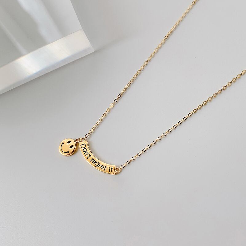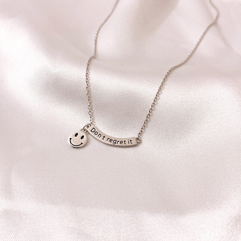 送料無料 ANENJERYシルバーカラー曲線文字笑顔ペンダントネックレス女性ゴールドチャームネックレスジュエリーギフトS-N702 レース 銀 アクセサリー AE165553624221842