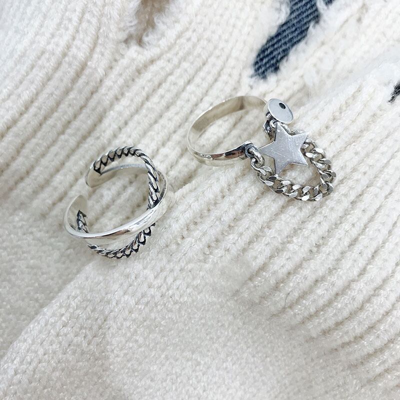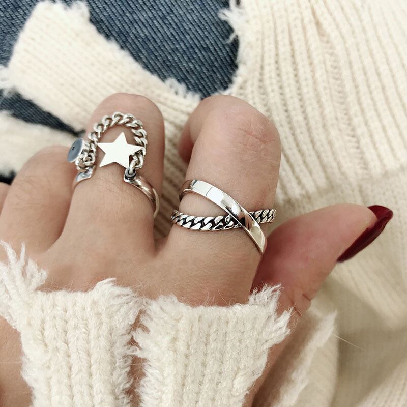 送料無料 ANENJERYシルバーカラーTelChianStarsフィンガーリング女性男性織りクロス幾何学リングヒップホップジュエリーギフトS-R947 指輪 銀 アクセサリー AE165576445265517