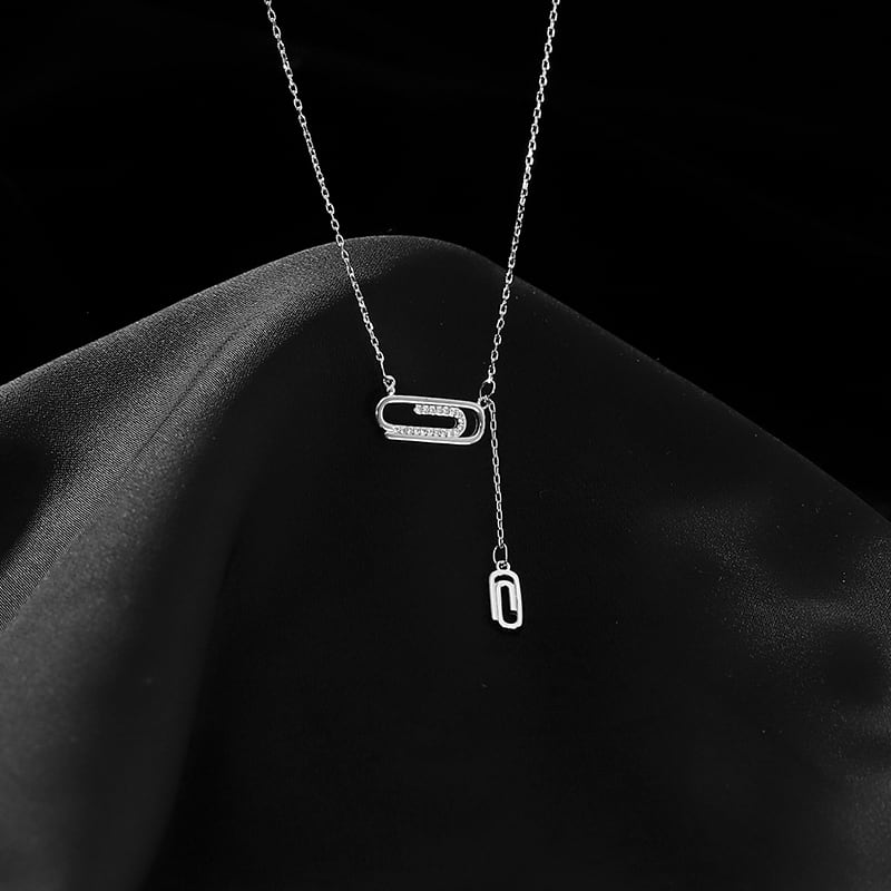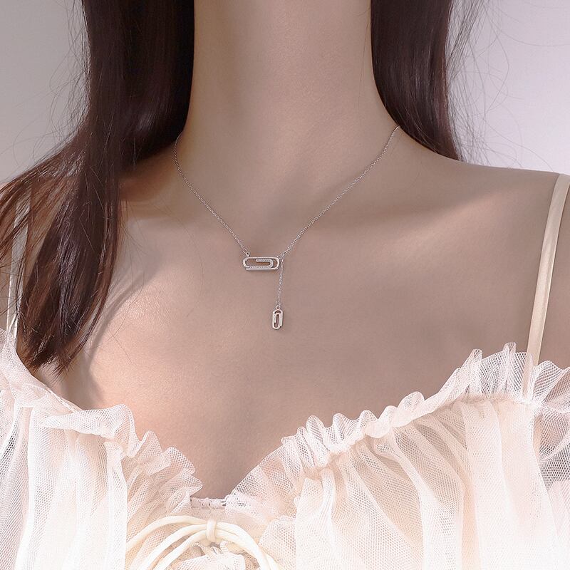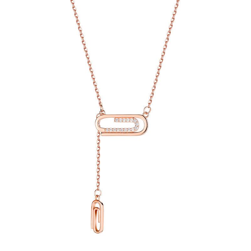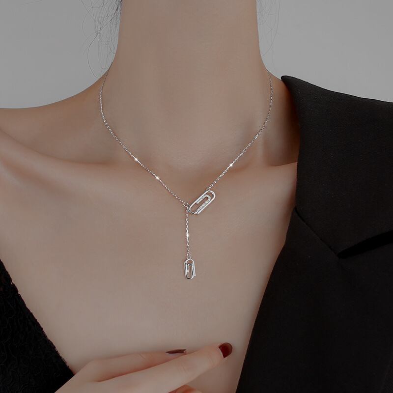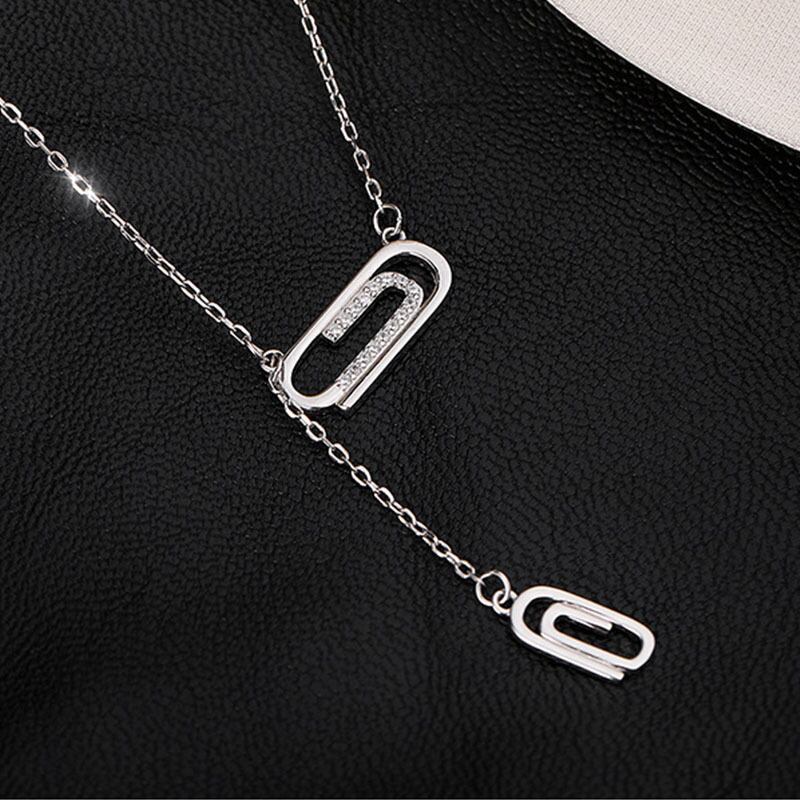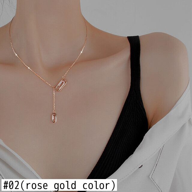 送料無料 ANENJERYシルバーカラーペーパークリップネックレス女性ロングテルローズゴールドネックレス友情ジュエリーギフト レース 銀 アクセサリー AE165515624726284