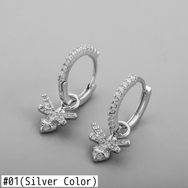 送料無料 ANENJERYシルバーカラーミツバチフープイヤリングレディースラグジュアリーCZジュエリーギフト 銀 アクセサリー AE165599901502811