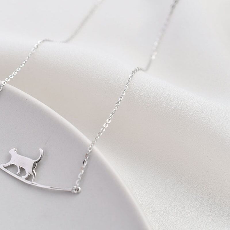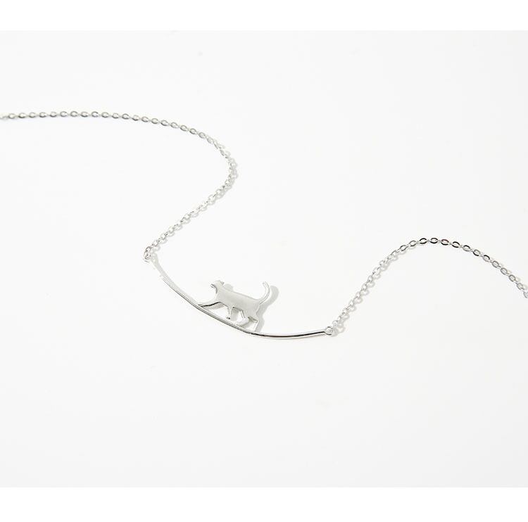 送料無料 ANENJERYシルバーカラーキュートキャットカーブペンダントネックレスレディースガールズアニマルネックレスジュエリーギフトS-N685 レース 大人ガーリー スウィート カジュアル 銀 アクセサリー AE16557322359005
