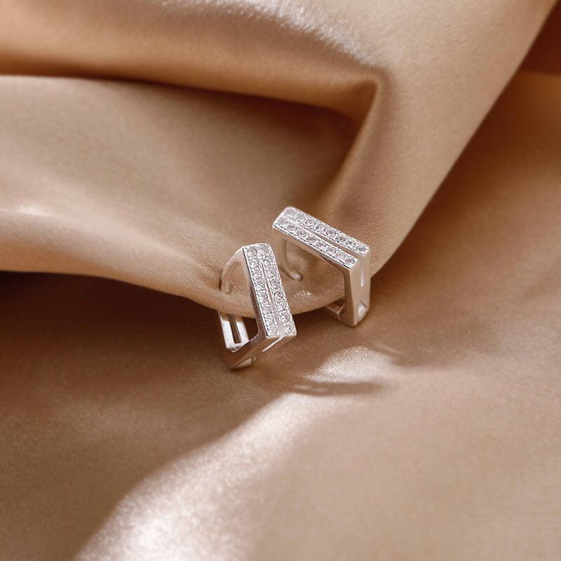 送料無料 ANENJERYシルバーカラーラウンドスクエアスモールフープピアスレディースメンズダブルレイヤー幾何学CZピアスデイリージュエリーS-E1359 イヤリング リング 指輪 銀 スクウェア アクセサリー AE165581631900322