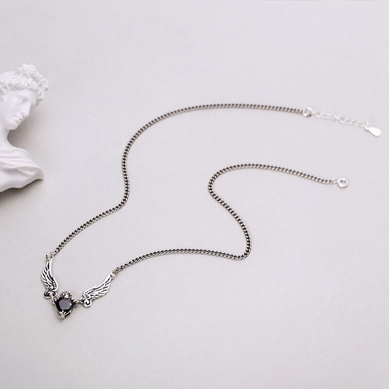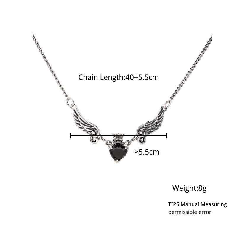 送料無料 エンジェルウィングスハートブラックジルコンネックレスレディースタイシルバーカラーネックレスヴィンテージジュエリーS-N647 レース 銀 ビンテージ アクセサリー AE165575601889795