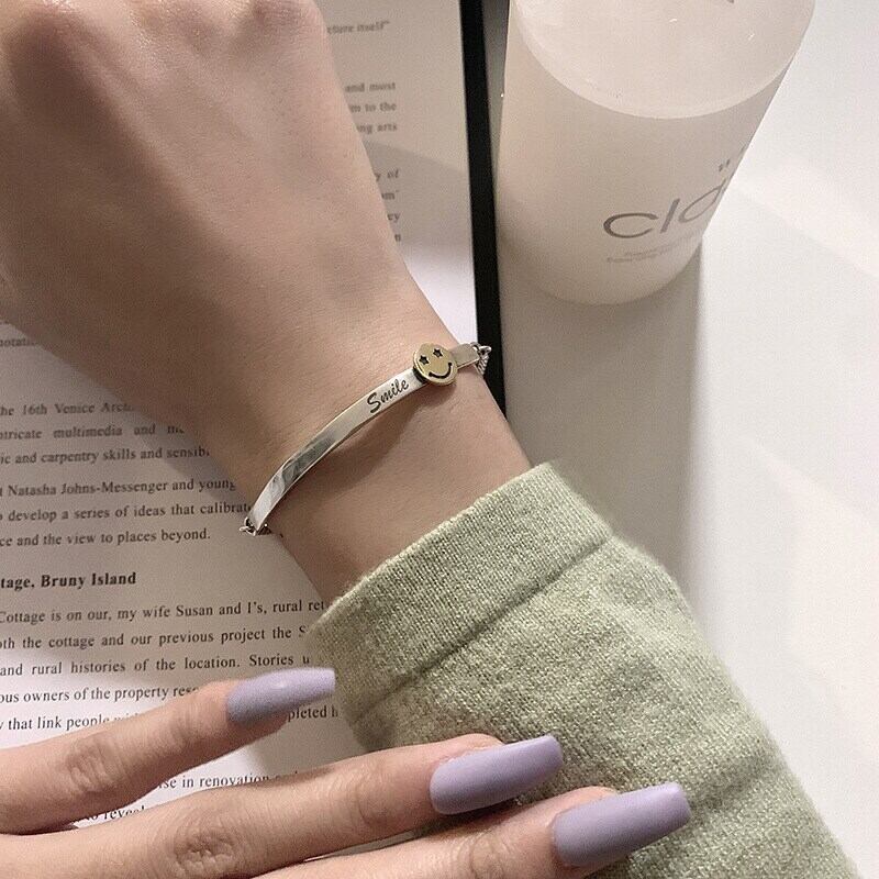 送料無料 ANENJERYシルバーカラースマイルフェイスブレスレット女性男性タイシルバーブレスレットジュエリーギフトジュエリー 銀 アクセサリー AE165510273867199
