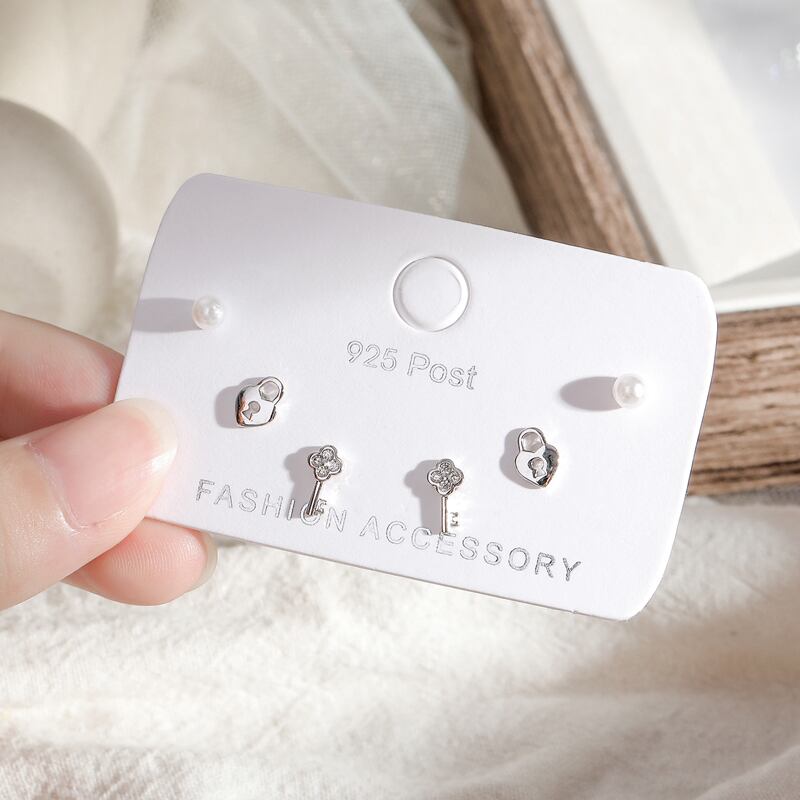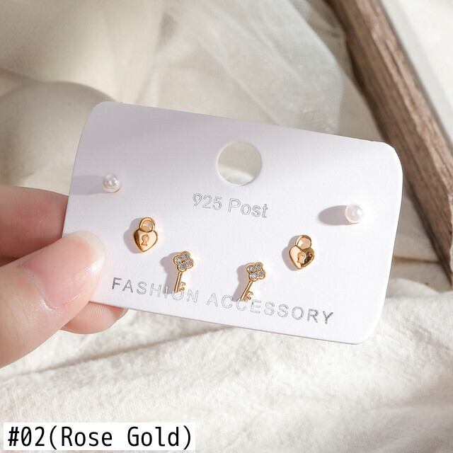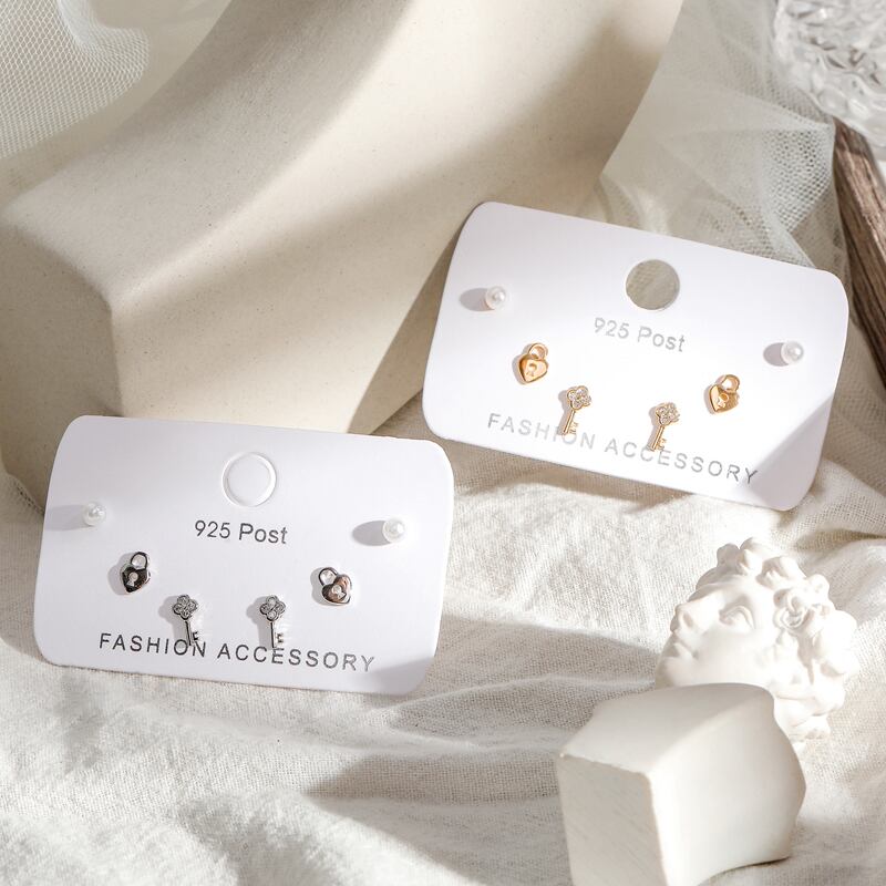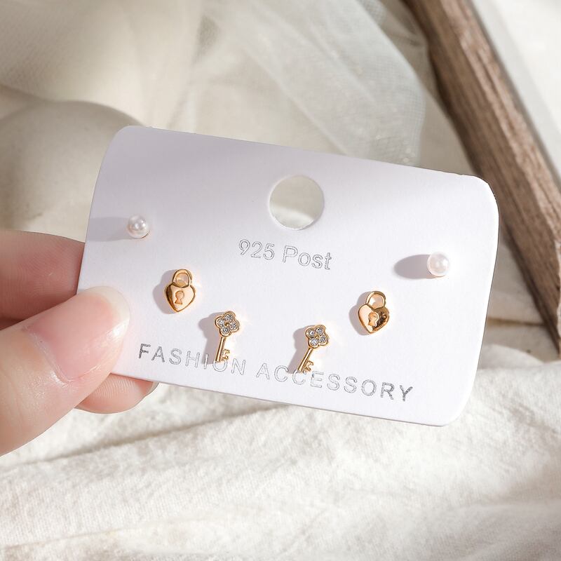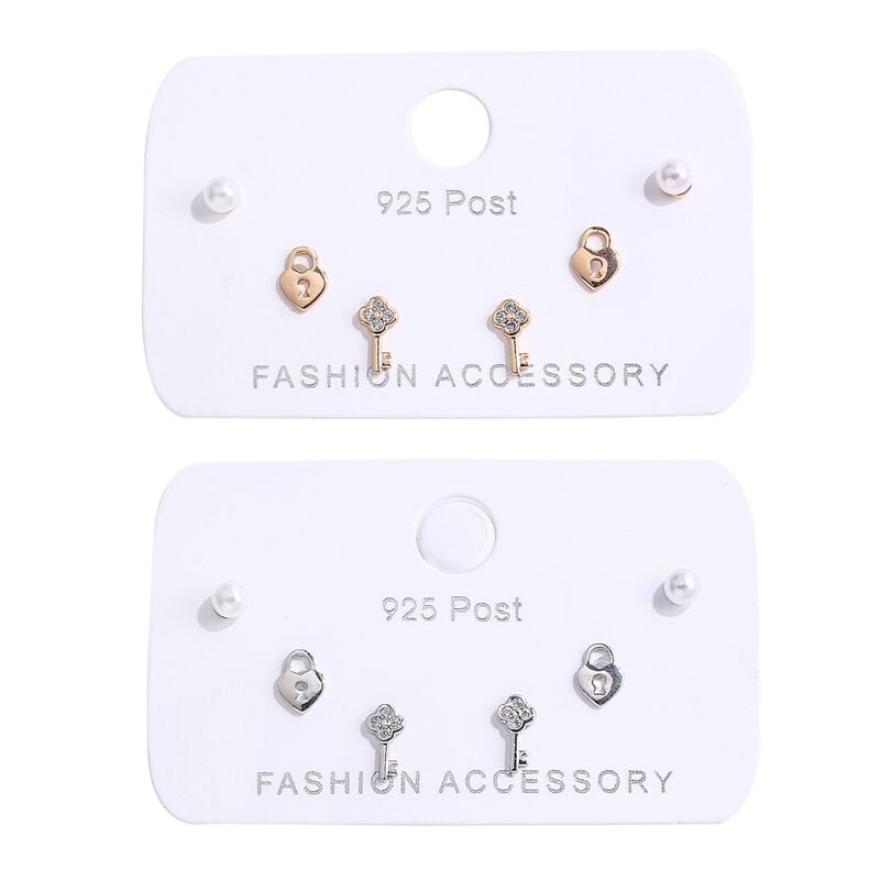 送料無料 ANENJERY可憐なハートLcokキーパールスタッドピアスセット女性6ピースイヤリングセットデイリージュエリーギフトS-E1231 真珠 指輪 アクセサリー AE165597652301856
