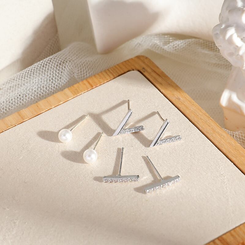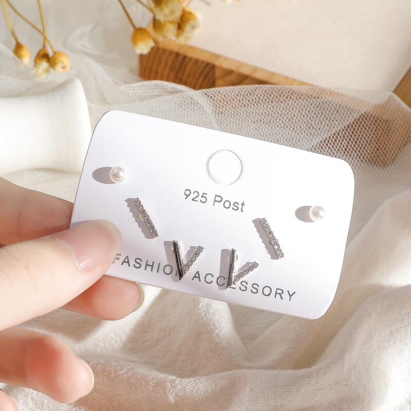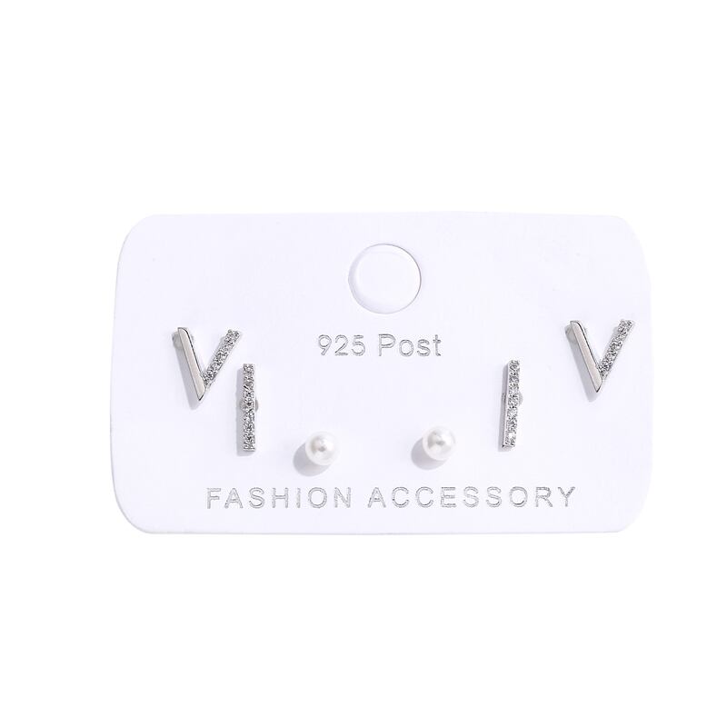 送料無料 シャイニーキュービックジルコンストレートV字型パールスタッドピアスセットレディース6ピースピアスセットジュエリーギフトS-E1215 イヤリング 真珠 リング 指輪 アクセサリー AE165565349201811