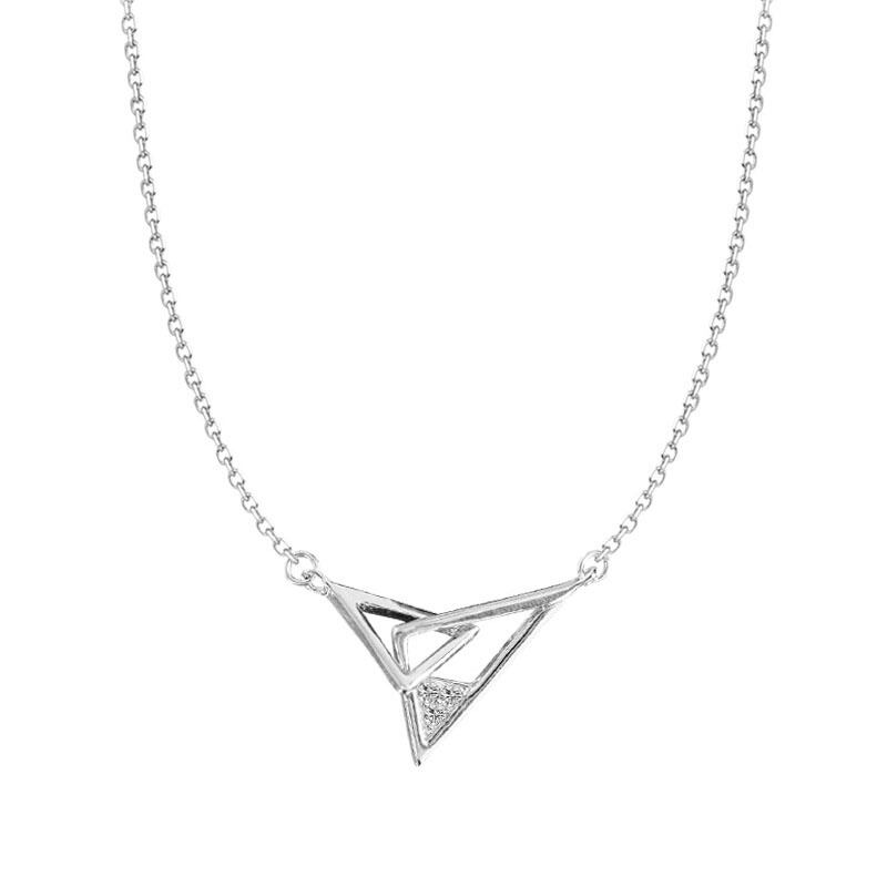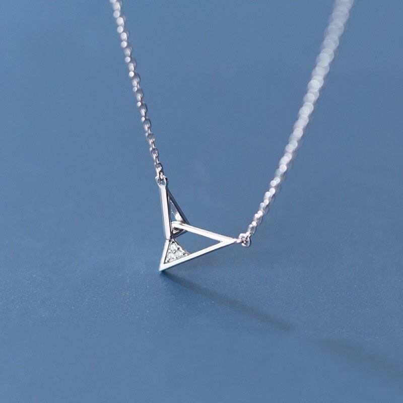 送料無料 ANENJERYシルバーカラーインターロッキングトライアングルペンダントネックレスキュービックジルコン鎖骨チェーンネックレスレディースギフトS-N599 レース 銀 アクセサリー AE165558074269866