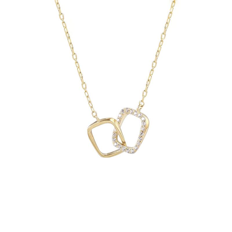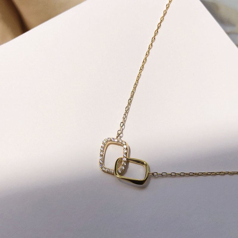送料無料 ANENJERYシルバーカラーインターロッキングネックレス女性不規則な正方形CZ幾何学的鎖骨チェーンネックレスギフト レース 銀 スクウェア アクセサリー AE165510170931268