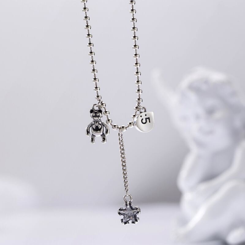 送料無料 シルバーカラーベアスタージルコンペンダントタイシルバーネックレスロングチェーン付きTelネックレス女性ジュエリーギフトS-N648 レース 銀 アクセサリー AE165562275920941