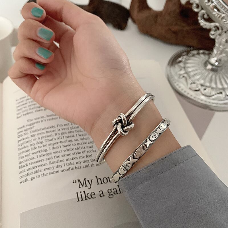 送料無料 ANENJERYシルバーカラーフィッシュノットバングル女性幾何学的オープンカフバングルギフトジュエリー 銀 アクセサリー AE16557690438372