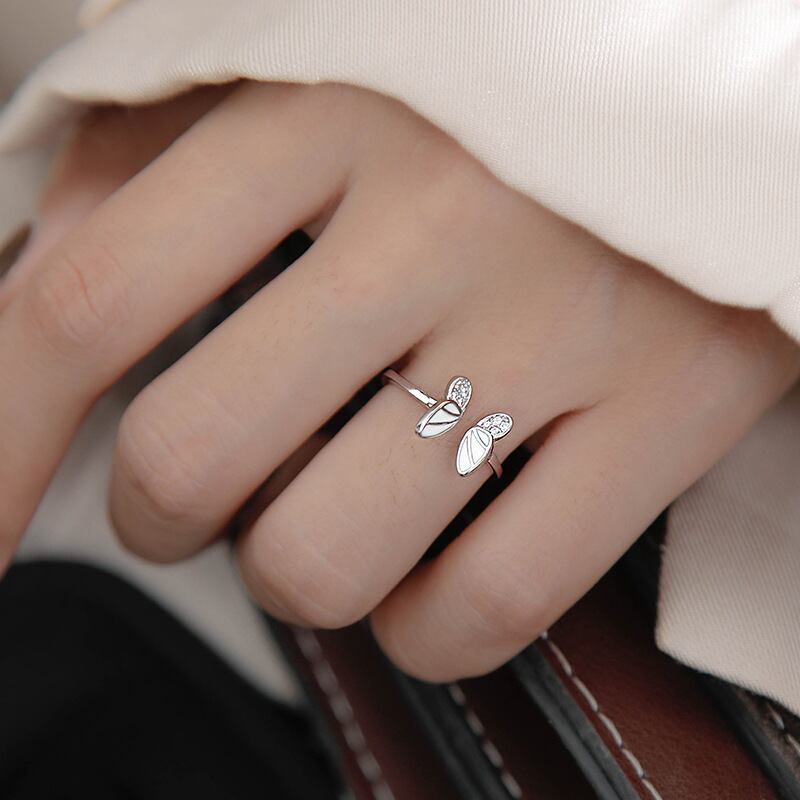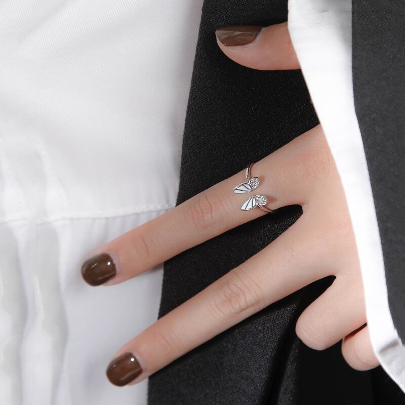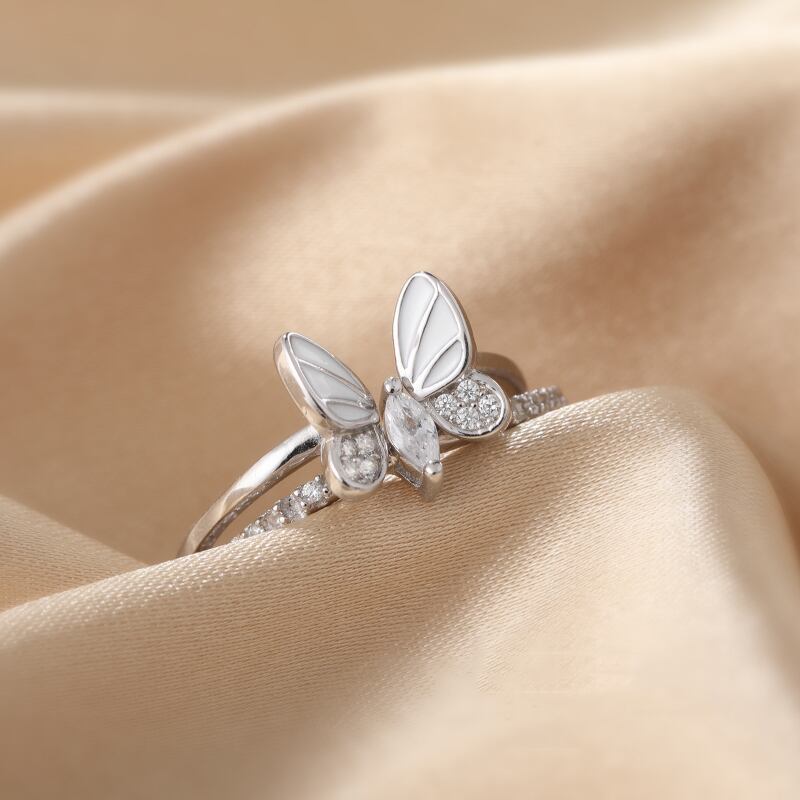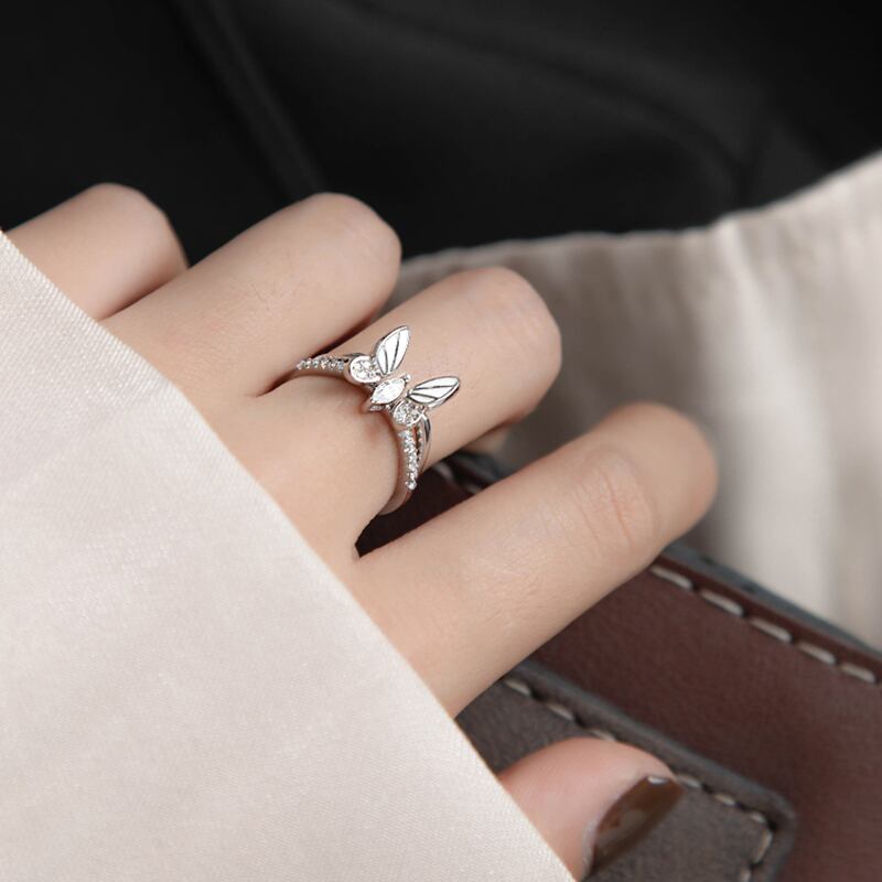 送料無料 シルバーカラーコンビネーションリングジュエリー立体ジルコンバタフライリングレディースアジャスタブルギフトS-R912 指輪 銀 アクセサリー AE165517503768186