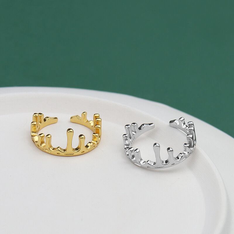 送料無料 ANENJERYシルバーカラー不規則なクラウンリング女性男性調節可能な指輪カップルジュエリー アジャスタブル 銀 アクセサリー AE165530443411513