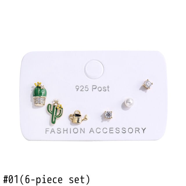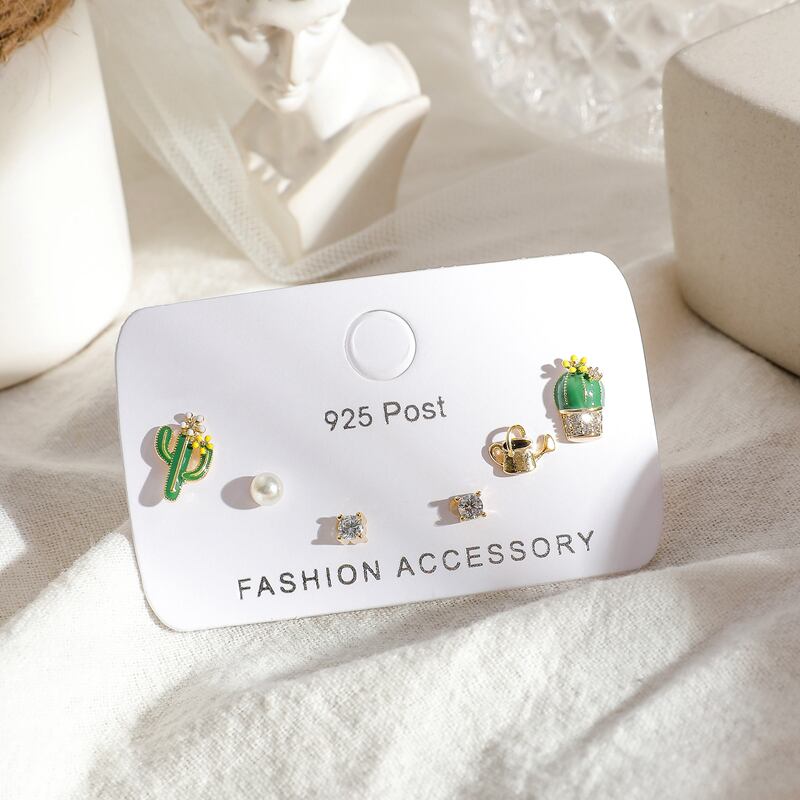 送料無料 サボテン鉢植えパールジルコンスタッドピアスセットレディース幾何学6ピースピアスセットジュエリーギフトS-E1212 イヤリング 真珠 リング 指輪 アクセサリー AE165565203975129