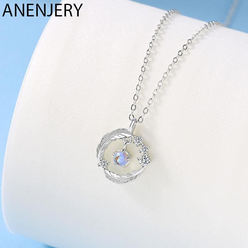 送料無料 ANENJERYシルバーカラームーンストーンフェザーペンダントネックレスレディースジュエリーギフト レース 銀 アクセサリー AE165565454043070