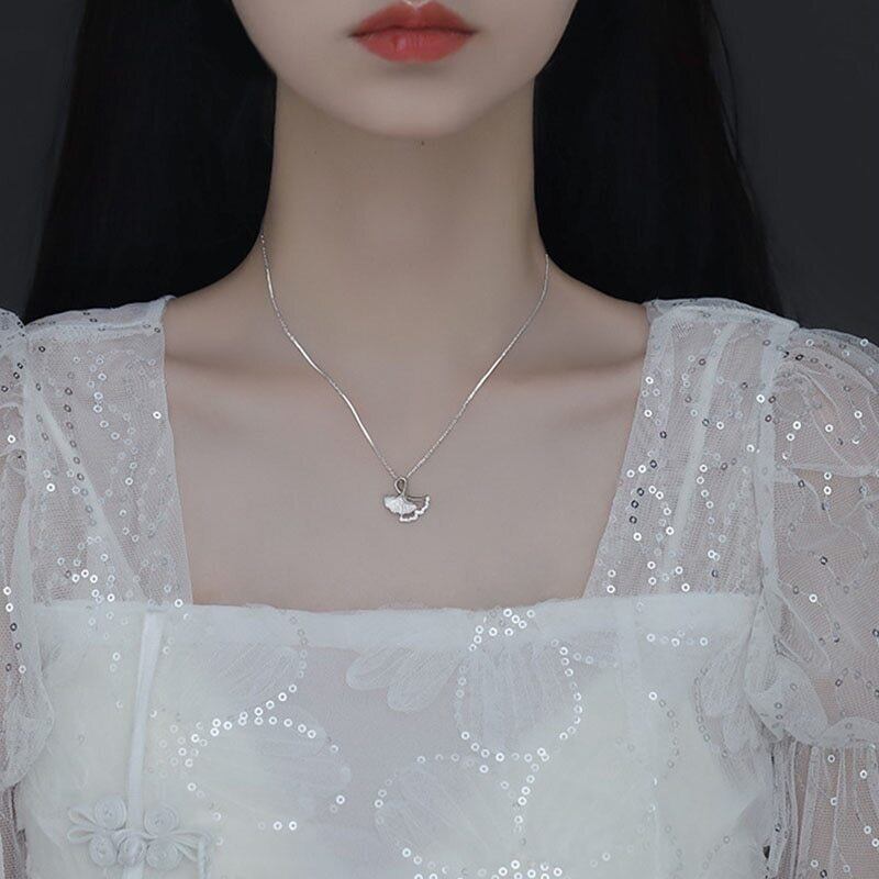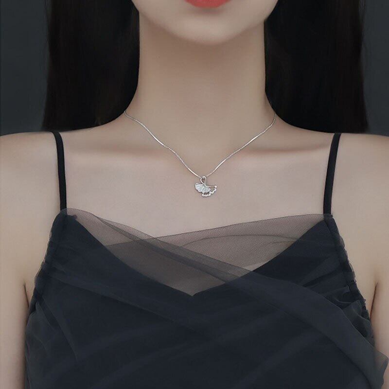 送料無料 ANENJERYシルバーカラーリーフペンダント鎖骨チェーンネックレス女性ゴールデンシンプルジュエリー レース 銀 アクセサリー AE165517985376243