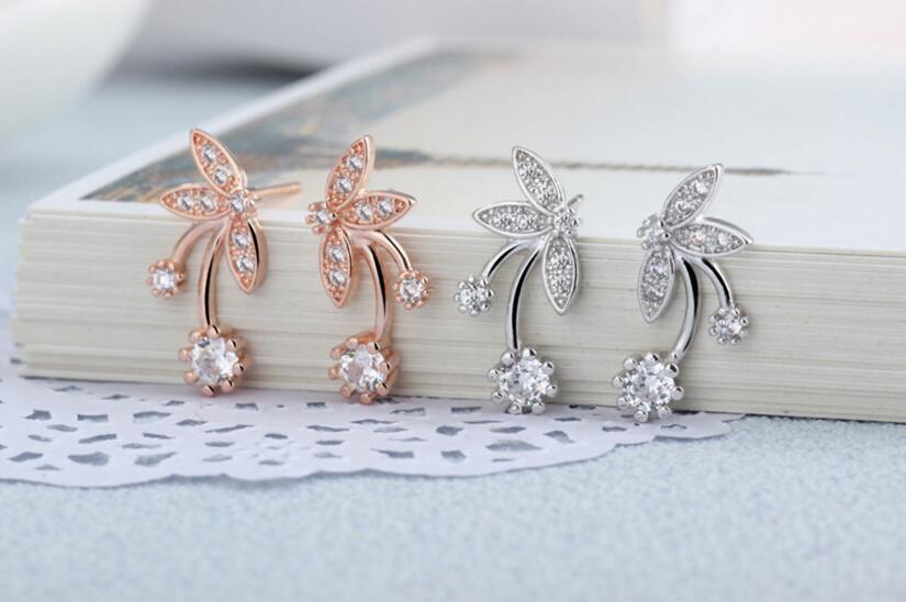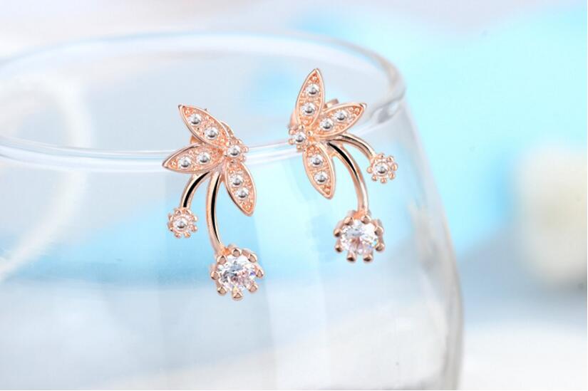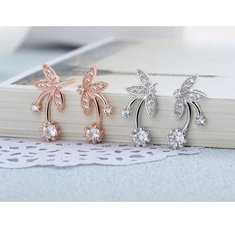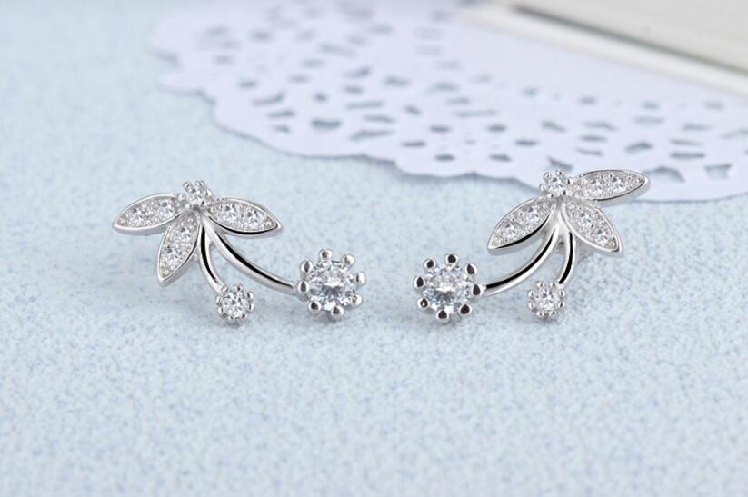 送料無料 ANENJERYシルバーカラーバタフライフラワーリーフスタッドピアスジルコンピアスレディースジュエリーギフトpendientesoorbellenS-E346 イヤリング リング 指輪 フラワーデザイン 銀 アクセサリー AE165533479060773