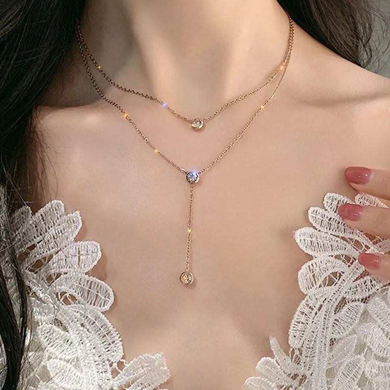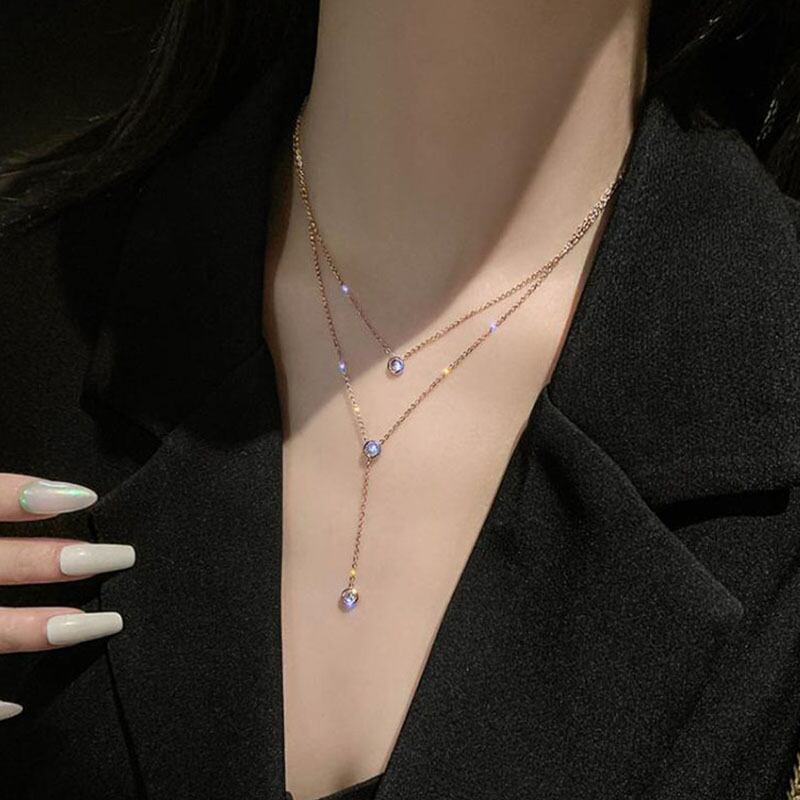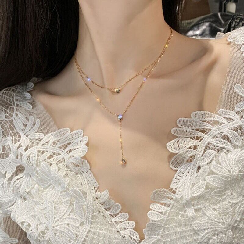 送料無料 ANENJERYシルバーカラー銅ジルコンTelダブルレイヤーネックレス女性優しい気質鎖骨チェーンシンプルなジュエリー レース 銀 アクセサリー AE165540276021627