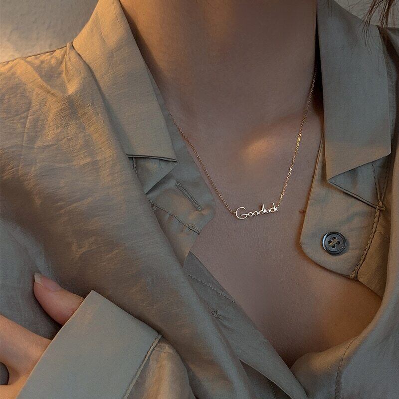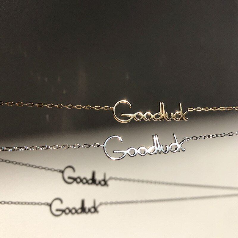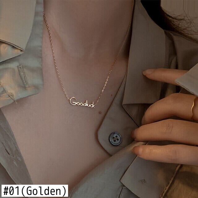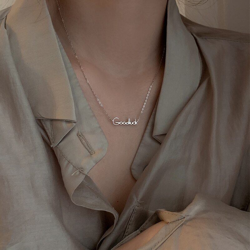 送料無料 ANENJERYシルバーカラーグッドラックレターチェーンネックレスシンプルな個性薄い鎖骨チェーンジュエリー レース 銀 アクセサリー AE165562080642054