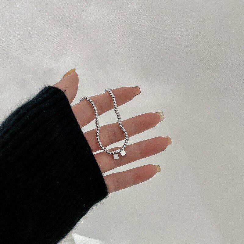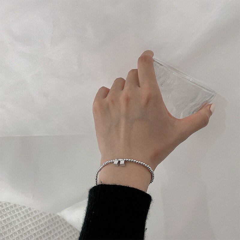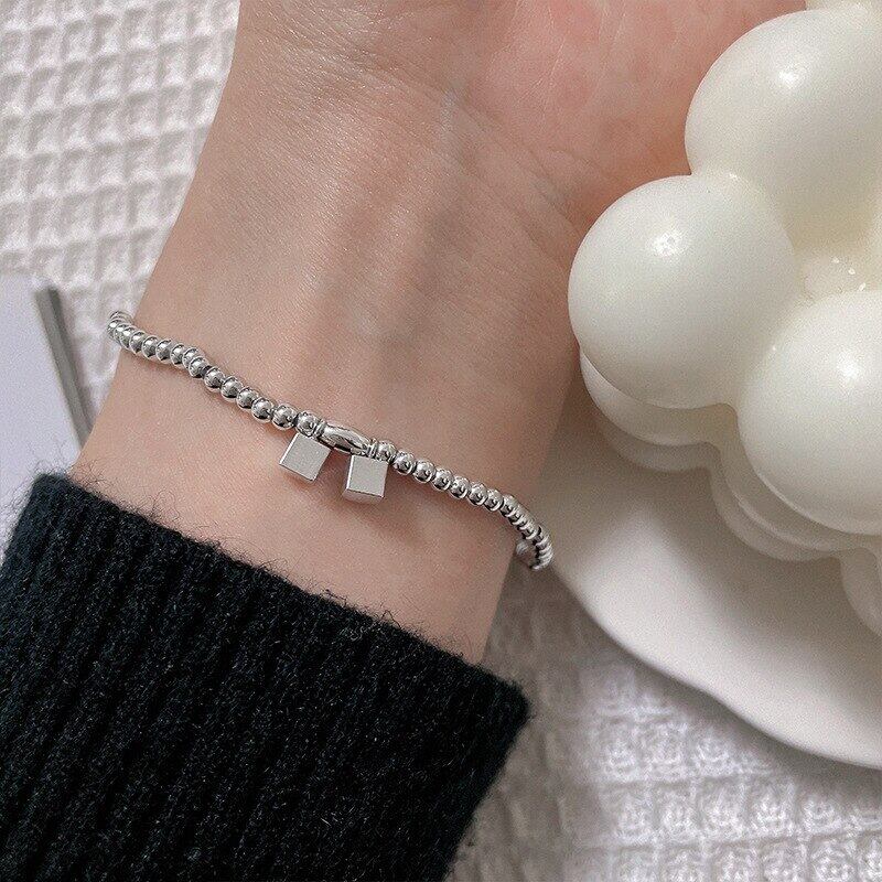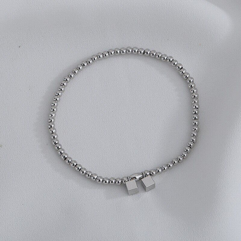 送料無料 ANENJERYシルバーカラー幾何学的なスクエアキューブブレスレット手作りの弾性ロープブレスレット女性男性デイリージュエリー エラスティック 伸縮 銀 スクウェア アクセサリー AE16554389916481