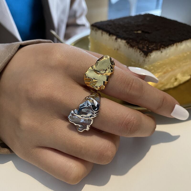 送料無料 ANENJERYシルバーカラー銅不規則な形厚いリング女性インスタイリッシュなフレンチジュエリー 指輪 銀 アクセサリー AE165553835338304