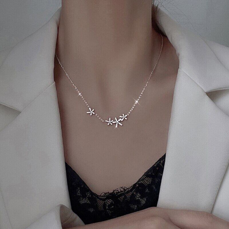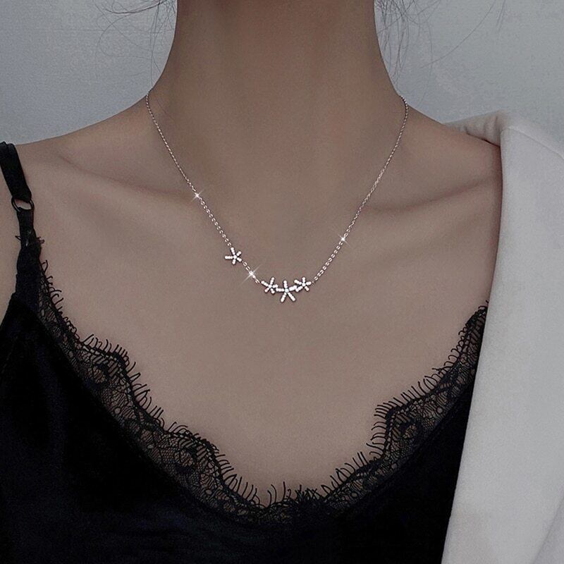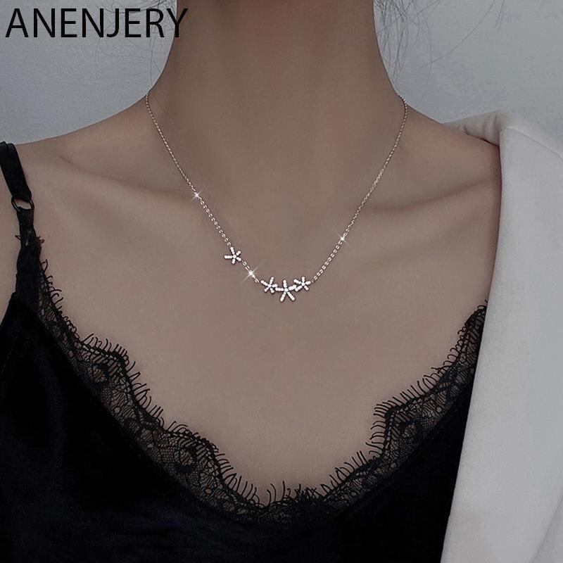 送料無料 ANENJERYシルバーカラーチェリーブロッサムペンダントネックレス女性Mnimalist鎖骨チェーンウェディングパーティージュエリー レース 銀 アクセサリー AE165579840243313