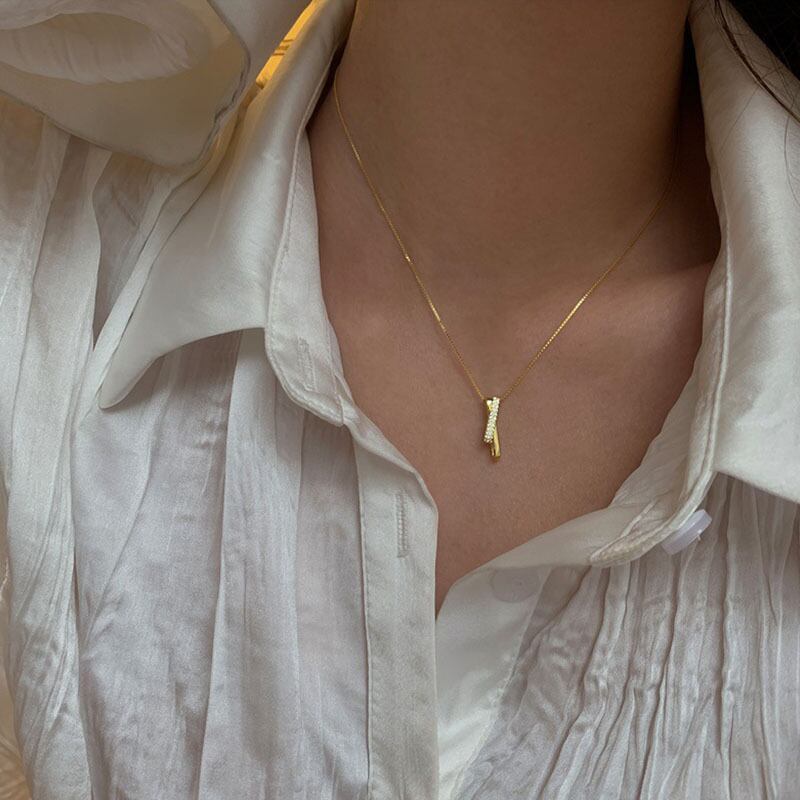 送料無料 ANENJERYシルバーカラー銅ストレートバークロスネックレス女性ニッチライトラグジュアリージルコン鎖骨チェーンパーティーアクセサリー レース 銀 アクセサリー AE165515652112499