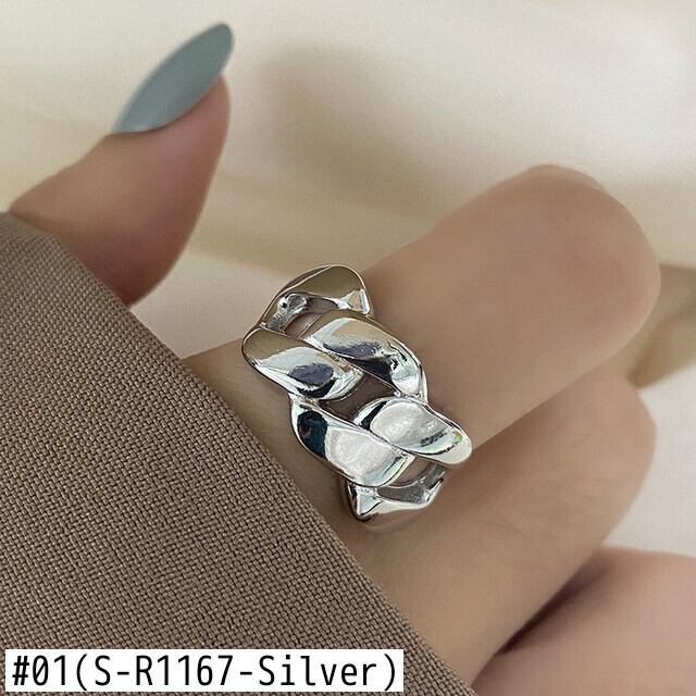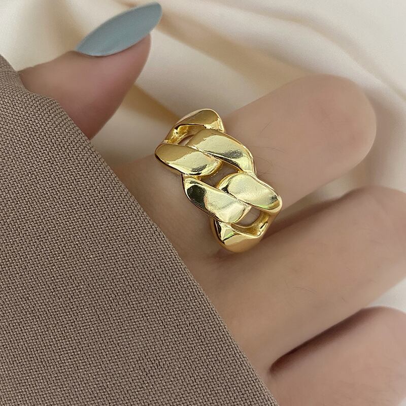 送料無料 ANENJERYシルバーカラー銅メタルチェーンワイドリング女性トレンディな気質ブロガー同じリングニッチアクセサリー 指輪 銀 アクセサリー AE165575768172161