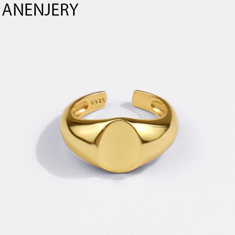 送料無料 ANENJERYシルバーカラーシグネットリング女性男性楕円形フィンガーリング調節可能なパーティージュエリー アジャスタブル 指輪 オーバル 銀 アクセサリー AE165579083809466
