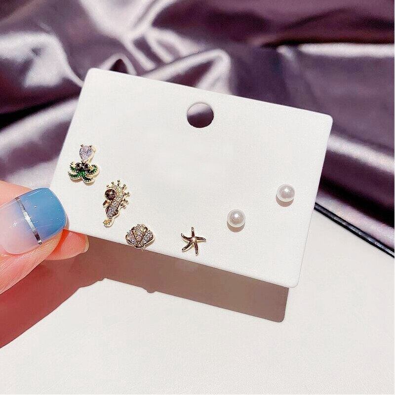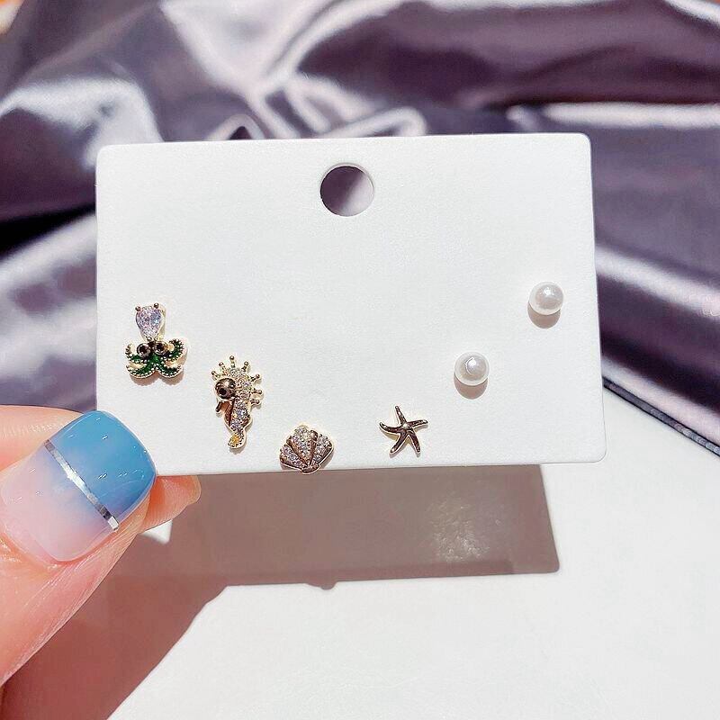 送料無料 ANENJERYシルバーカラースタッドピアスセット女性ヒトデシェルタツノオトシゴ6ピーススモールピアスセットサマージュエリー イヤリング 夏物 リング 指輪 銀 アクセサリー AE165526670203265