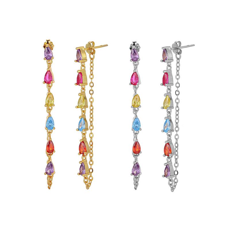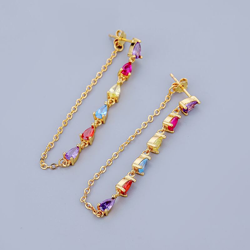 送料無料 ANENJERYカラフルなジルコンロングテルイヤリング女性両面イヤリングジュエリー 指輪 アクセサリー AE1655844764280