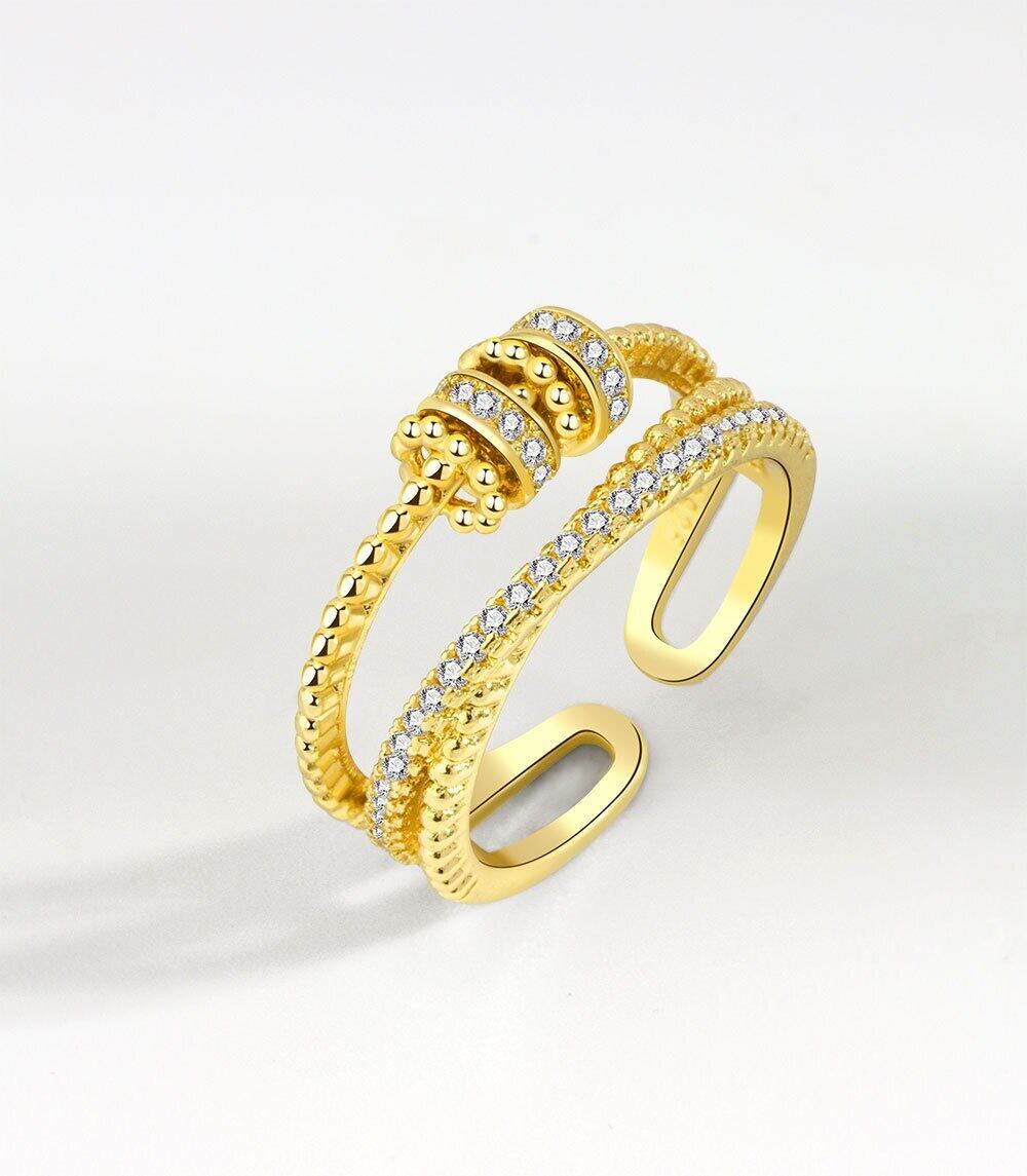 送料無料 ANENJERYヨーロッパとアメリカのクリックマイクロジルコンオープンリング気質多層クロスフィンガーリング女性ジュエリー 指輪 ヨーロピアン アクセサリー AE165584488320494