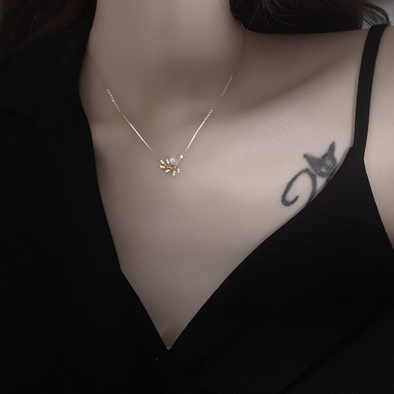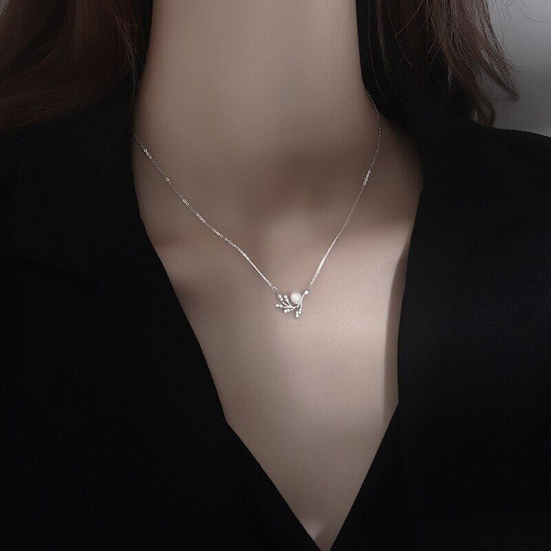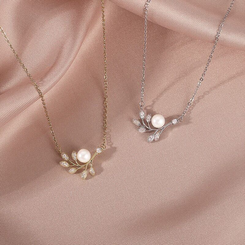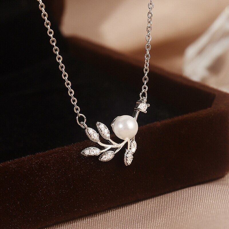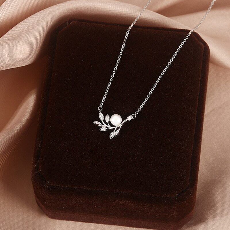 送料無料 ANENJERYシルバーカラーリーフネックレスライトラグジュアリージルコンパール鎖骨チェーンネックレスジュエリー レース 真珠 銀 アクセサリー AE165520676978188