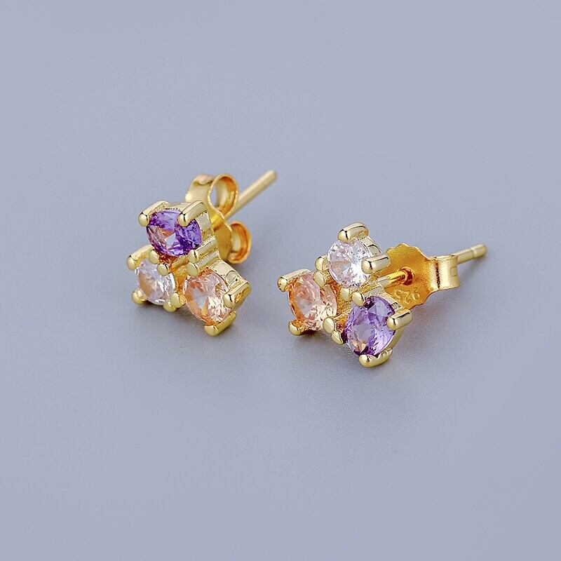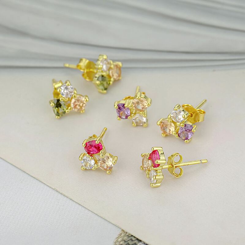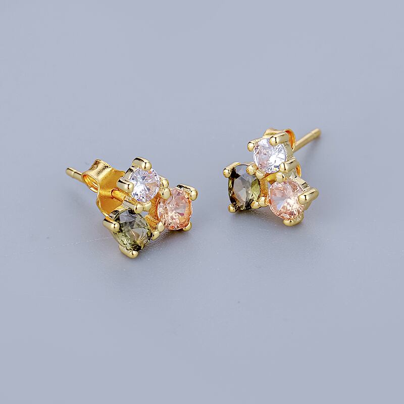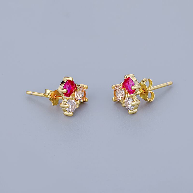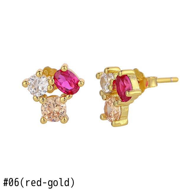 送料無料 ANENJERYカラー3ジルコンスタッドピアス女性可憐なスモールピアス18Kゴールドメッキアクセサリーbrincos レッド イヤリング リング 指輪 アクセサリー AE165563332931110