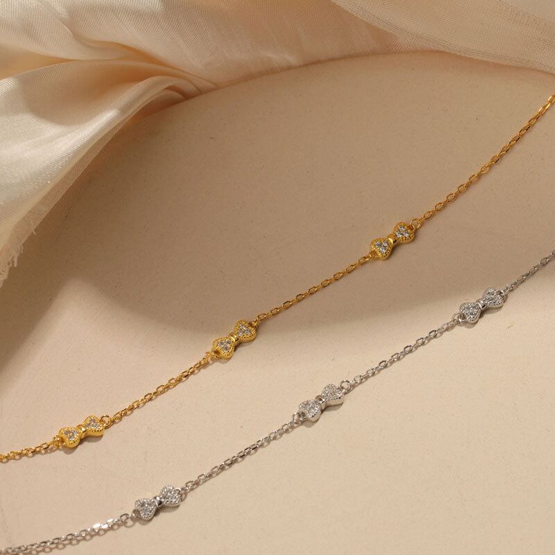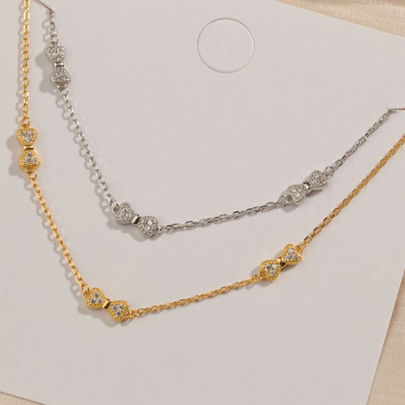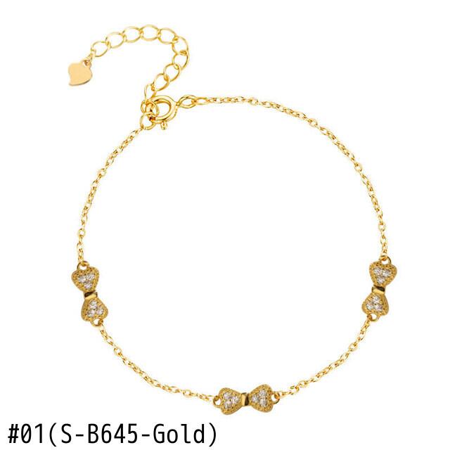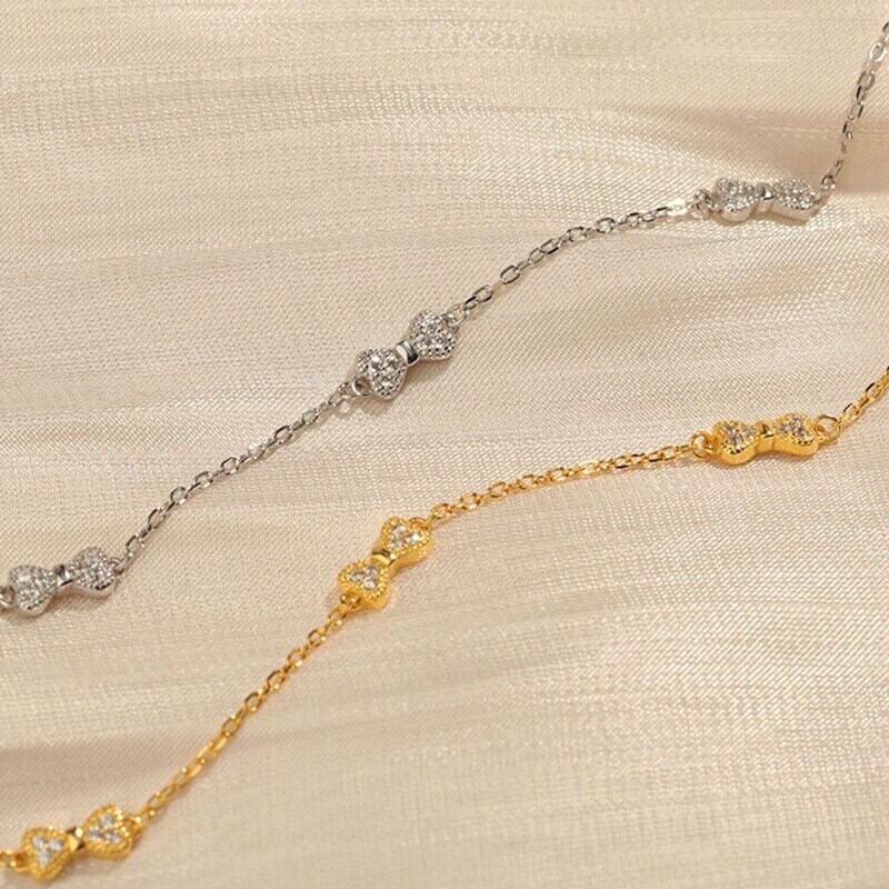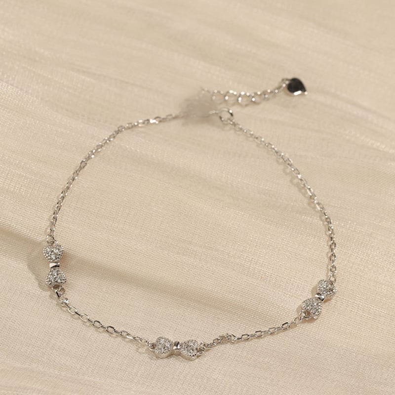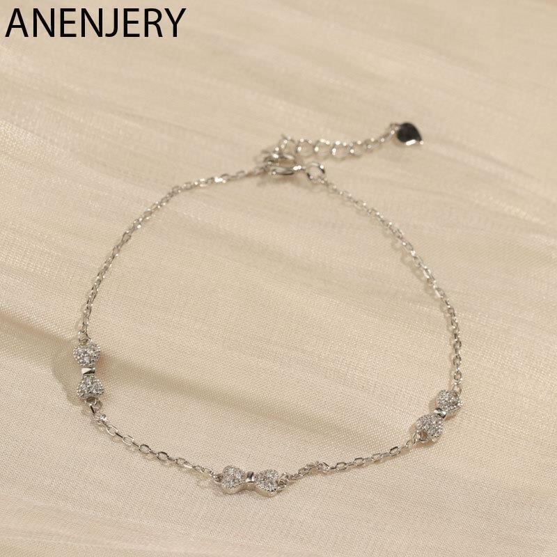 送料無料 ANENJERYシルバーカラーカッパーシャイニージルコンボウコントチェーンブレスレットレディースビューティフルガールジュエリー リボン 銀 アクセサリー AE165566594103451