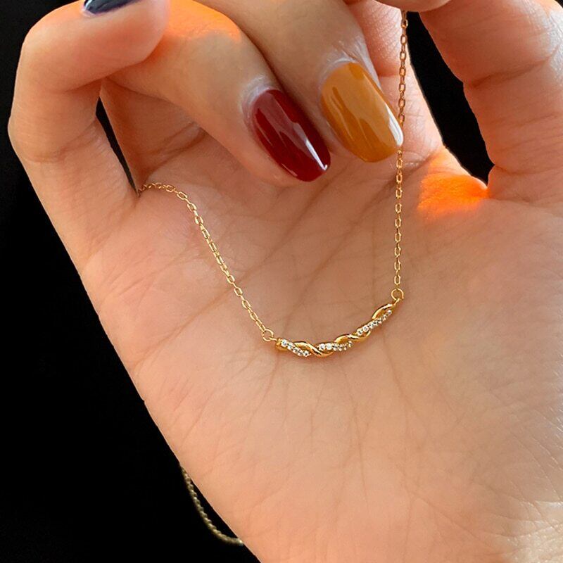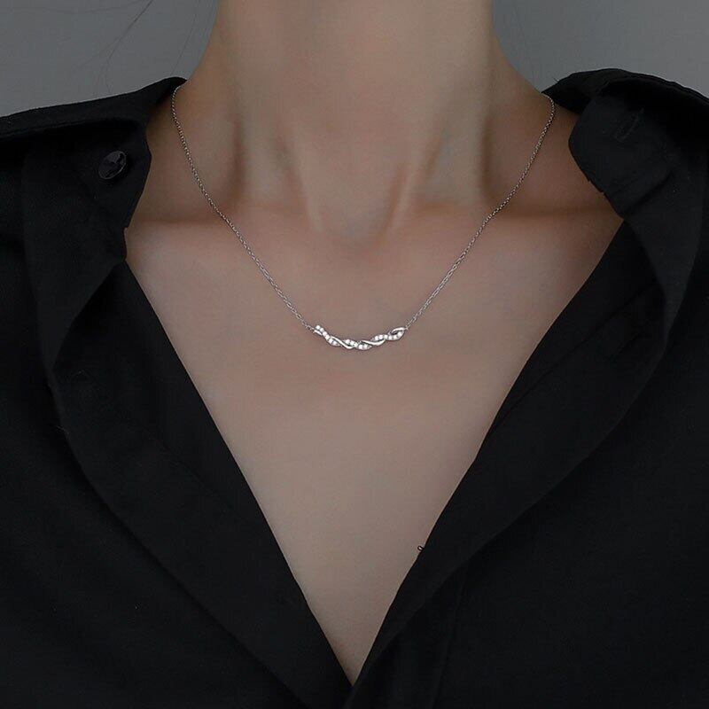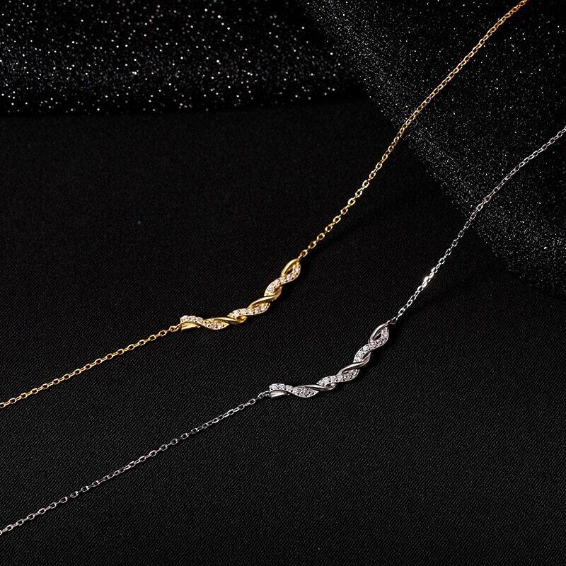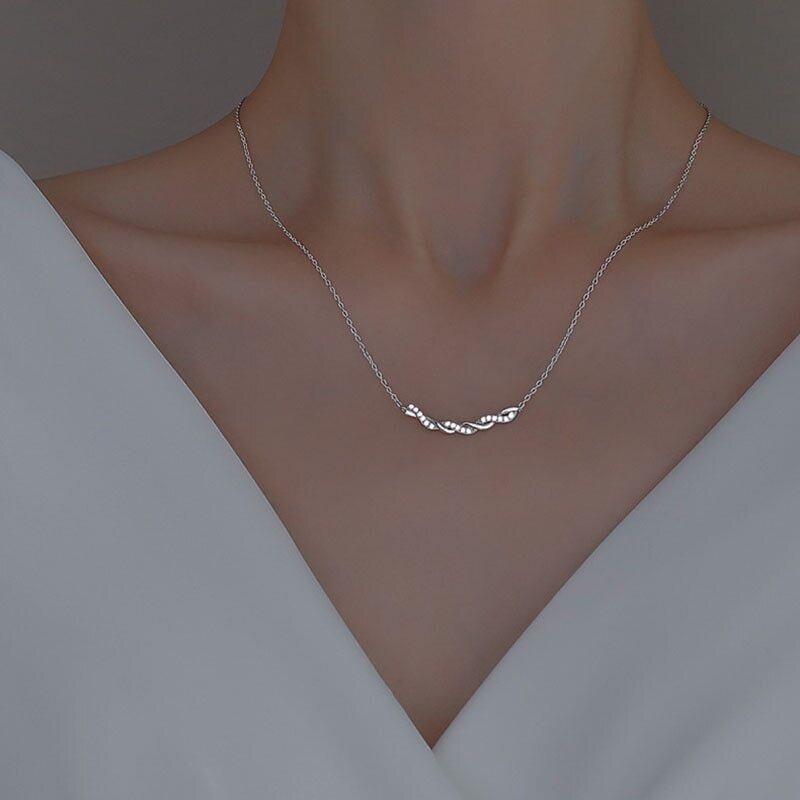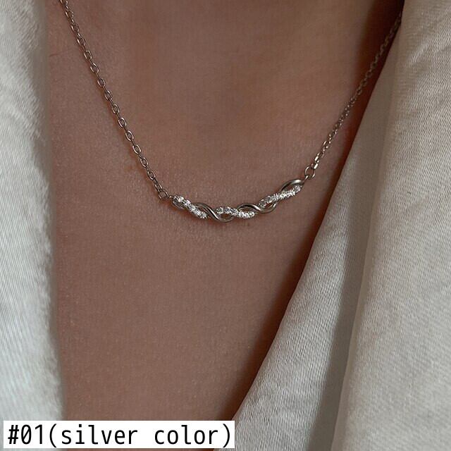送料無料 ANENJERYシルバーカラーツイストネックレスレディースシャイニーCZ鎖骨チェーンネックレスパーティージュエリー発送 レース 銀 アクセサリー AE165580360768801
