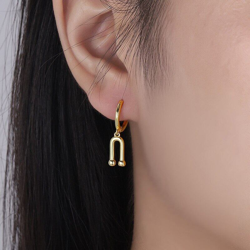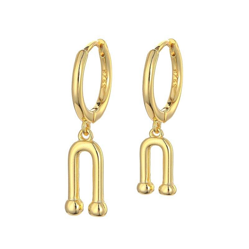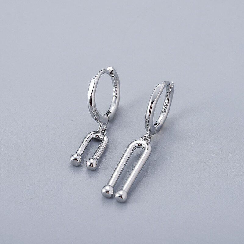 送料無料 ANENJERYシルバーカラー非対称U字型フープピアスシンプルで絶妙な幾何学的なイヤリング。 指輪 銀 アクセサリー AE165571344180962