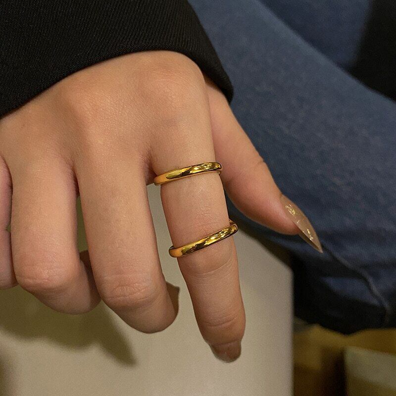 送料無料 ANENJERYシルバーカラーダブルレイヤーラインリングシンプルなホットサイズ変更可能なリングクールなジュエリー 指輪 銀 アクセサリー AE165540610823117