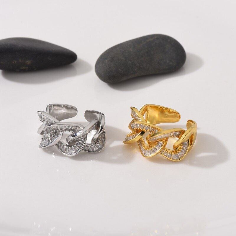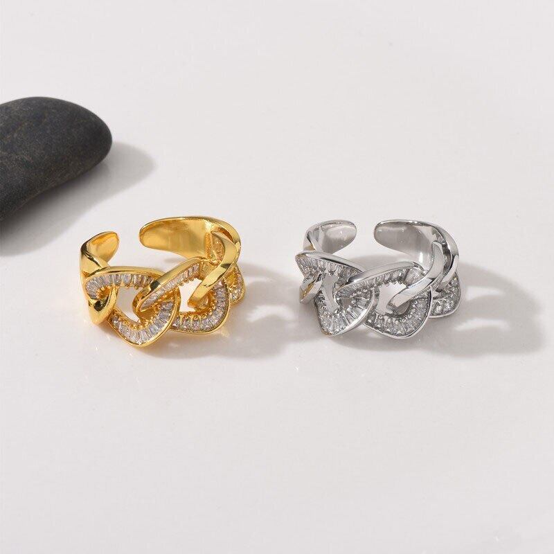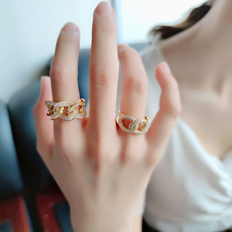 送料無料 ANENJERYヴィンテージシルバーカラージルコンチェーンリングスパークリングラグジュアリーオープンフィンガーリングパーティージュエリー 指輪 銀 ビンテージ アクセサリー AE165581280128998