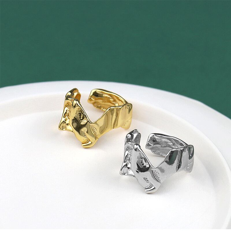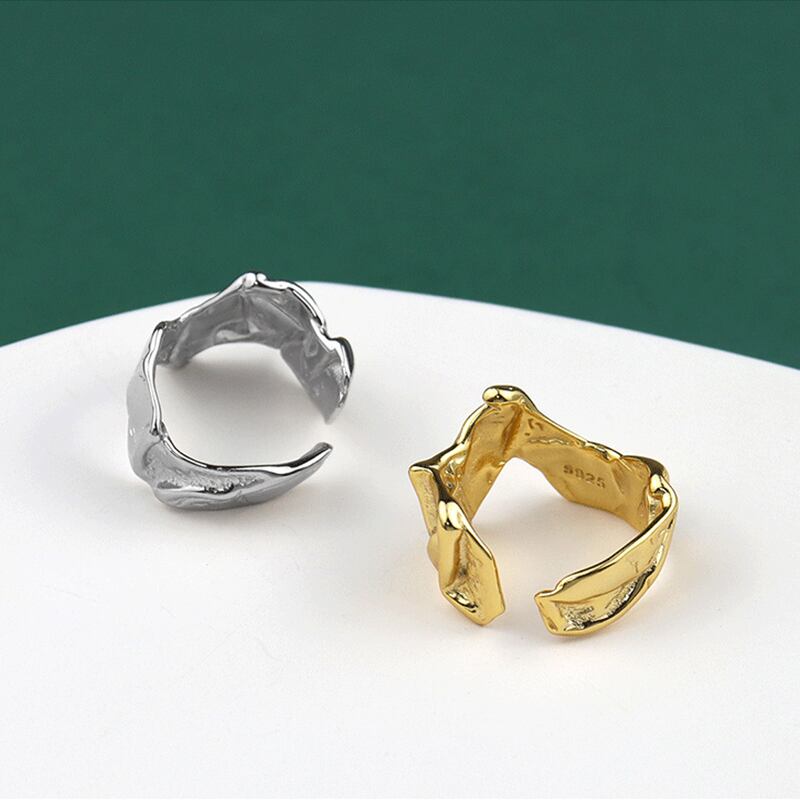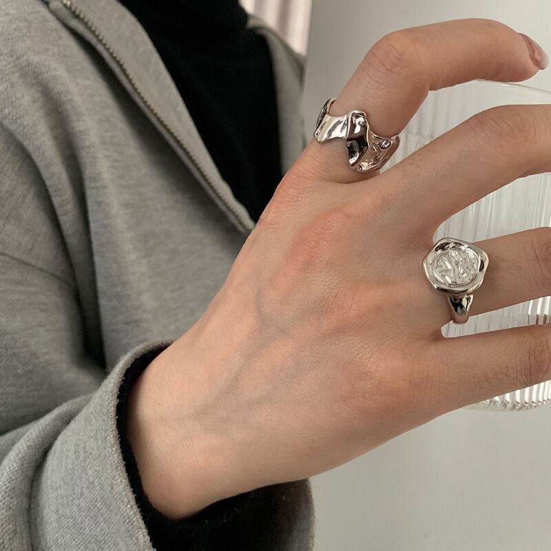 送料無料 ANENJERYシルバーカラーリング女性男性不規則な溶岩錫箔オープンフィンガーリングジュエリーギフト 指輪 銀 アクセサリー AE165526419515509