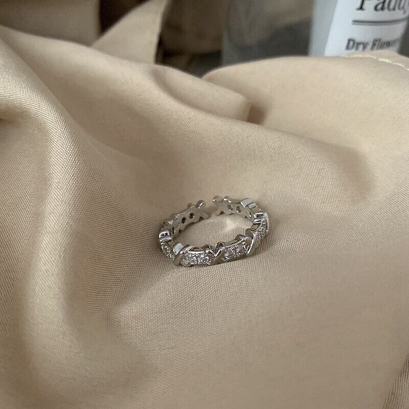 送料無料 ANENJERYシルバーカラーリング女性男性フランス幾何学的クロスCZリングジュエリーギフト 指輪 銀 アクセサリー AE165588486011309