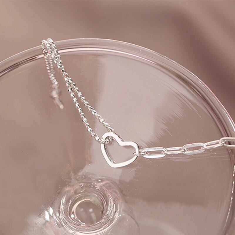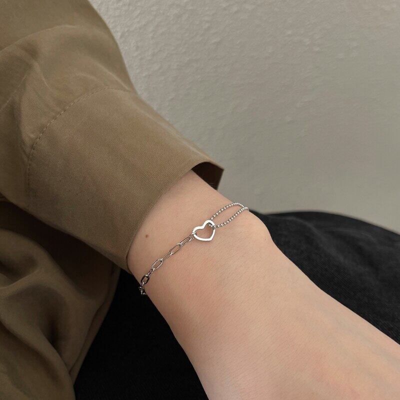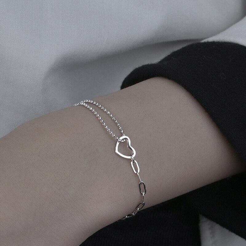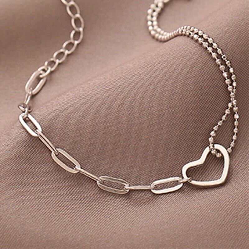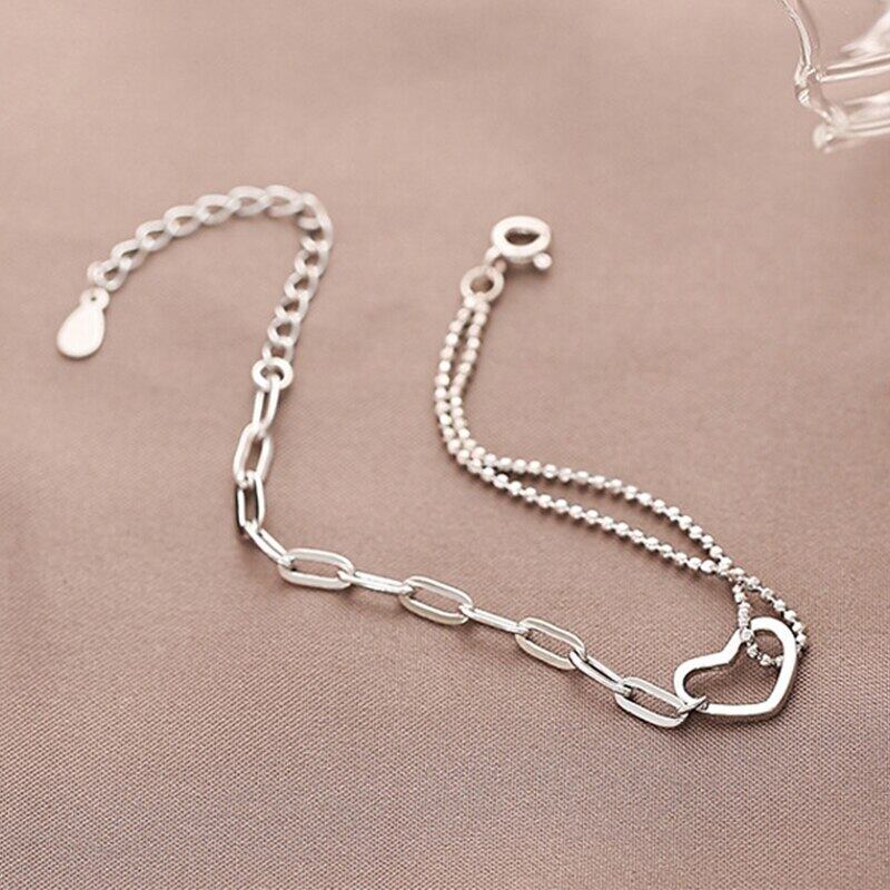 送料無料 ANENJERYシルバーカラーハートチャームブレスレットレディースダブルレイヤースプライシングチェーンブレスレット可憐なジュエリーギフト 銀 アクセサリー AE165571202455009