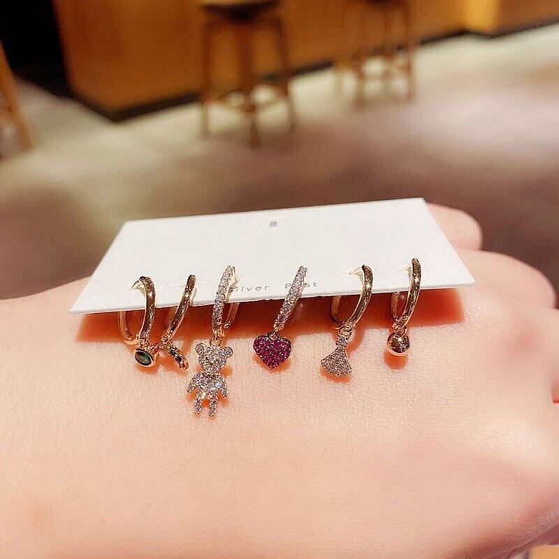 送料無料 ANENJERY可憐な色のジルコンベアレインボーハートピアスセット女性シルバーカラージュエリーギフトデイリージュエリー レッド イヤリング リング 指輪 銀 アクセサリー AE165527563186139