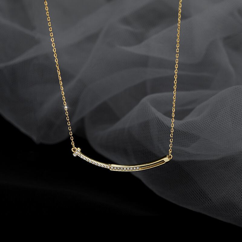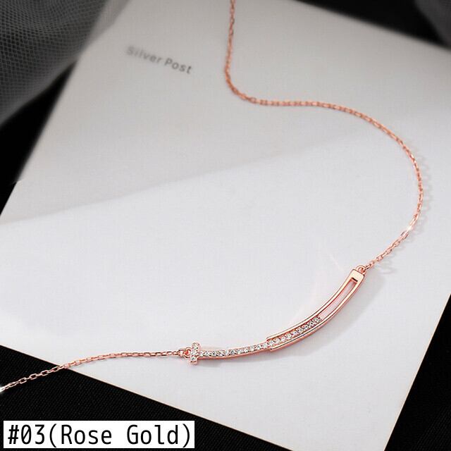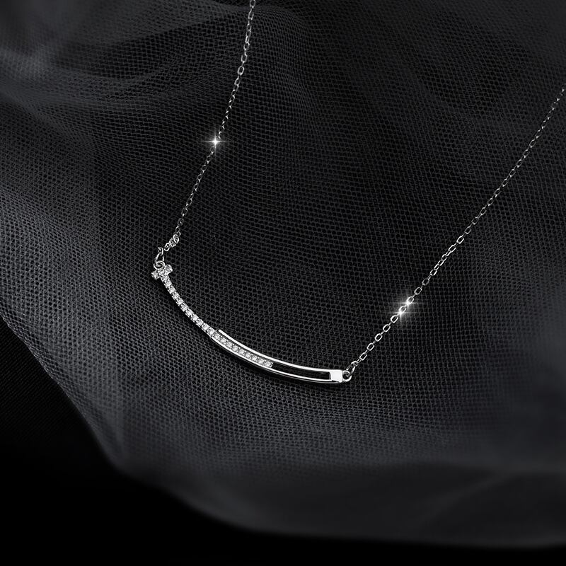 送料無料 ANENJERYシルバーカラー銅マイクロジルコンスマイルラインネックレス女性鎖骨チェーンパーティージュエリー レース 銀 アクセサリー AE165591910047203