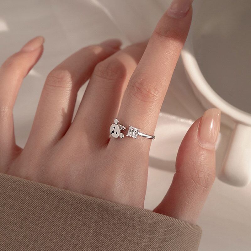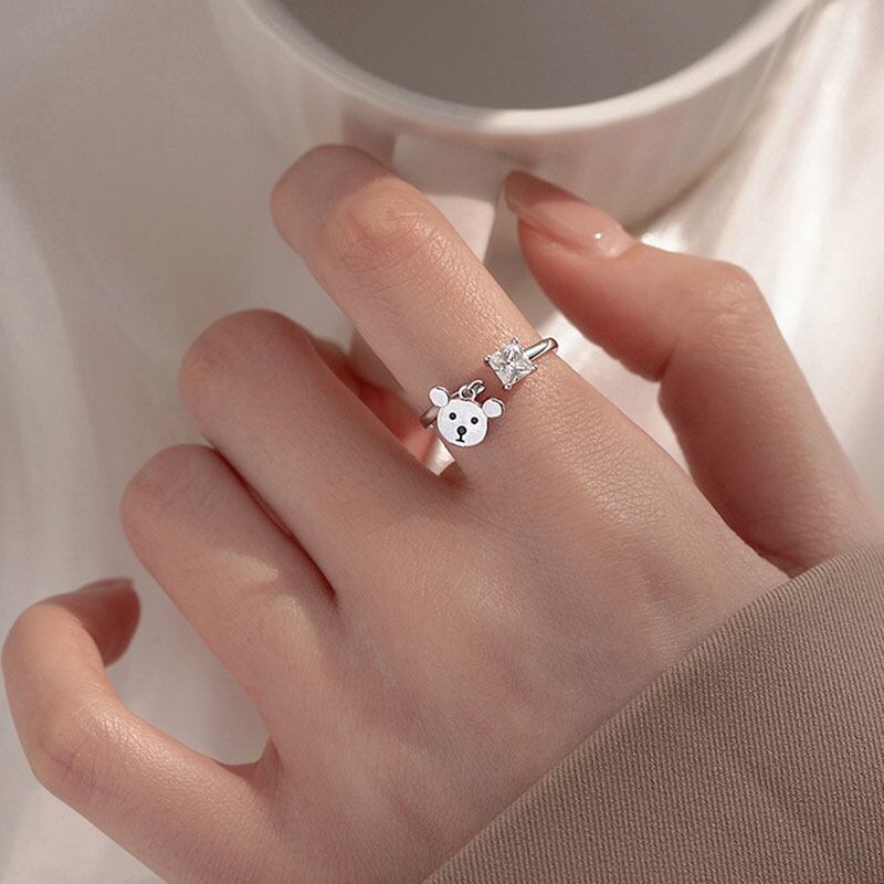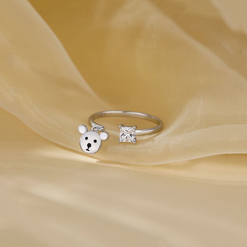 送料無料 ANENJERYかわいいクマの正方形のジルコンリング女性の女の子のパーティーの誕生日プレゼントのジュエリー 大人ガーリー スウィート キュート カジュアル 指輪 スクウェア アクセサリー AE165593888732921