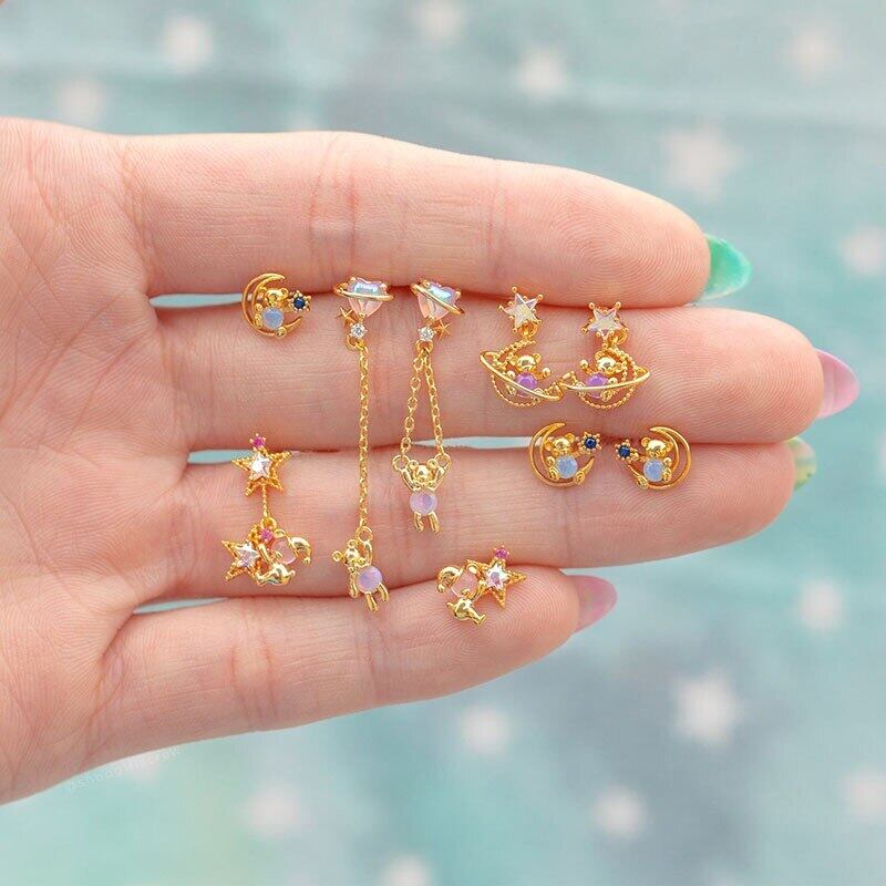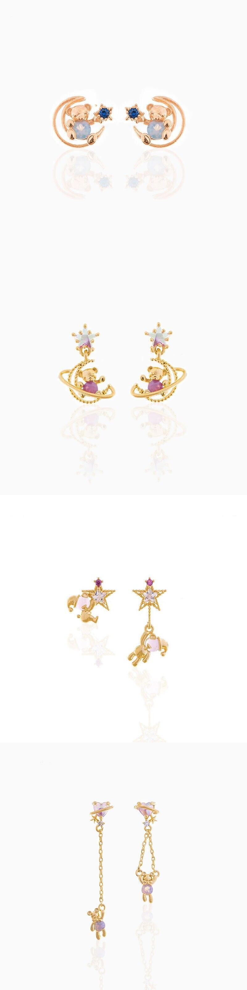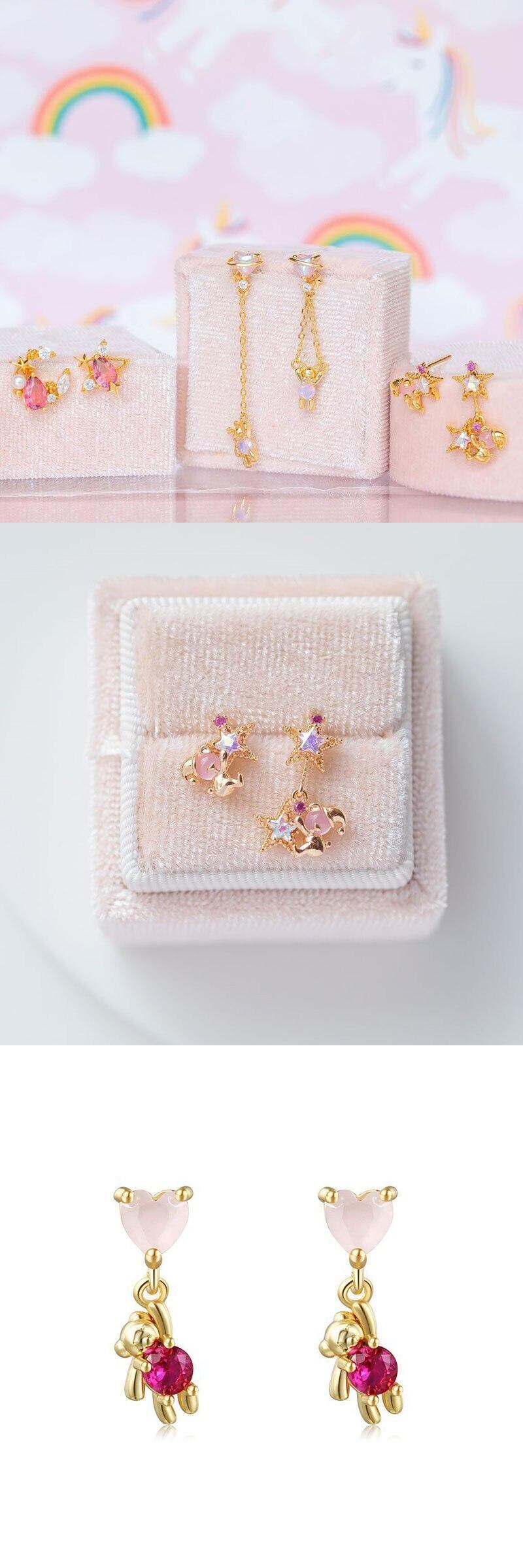 送料無料 ANENJERYミックススタイルかわいいピンクベアスタッドピアス女性が大好きハートムーンスターピアスジュエリーギフト イヤリング 大人ガーリー スウィート キュート カジュアル リング 指輪 アクセサリー AE165546916720207