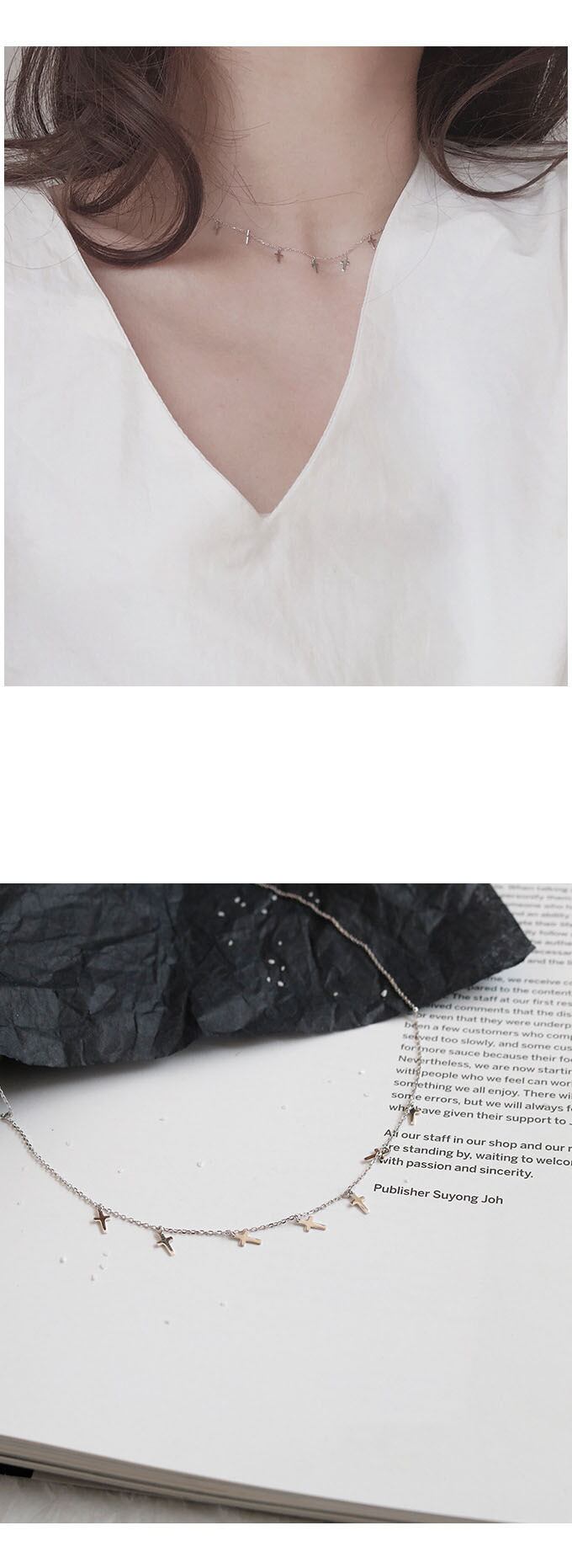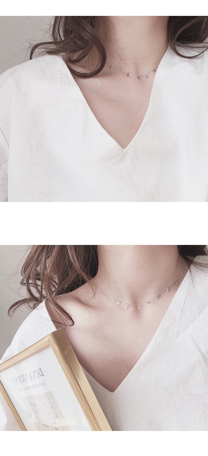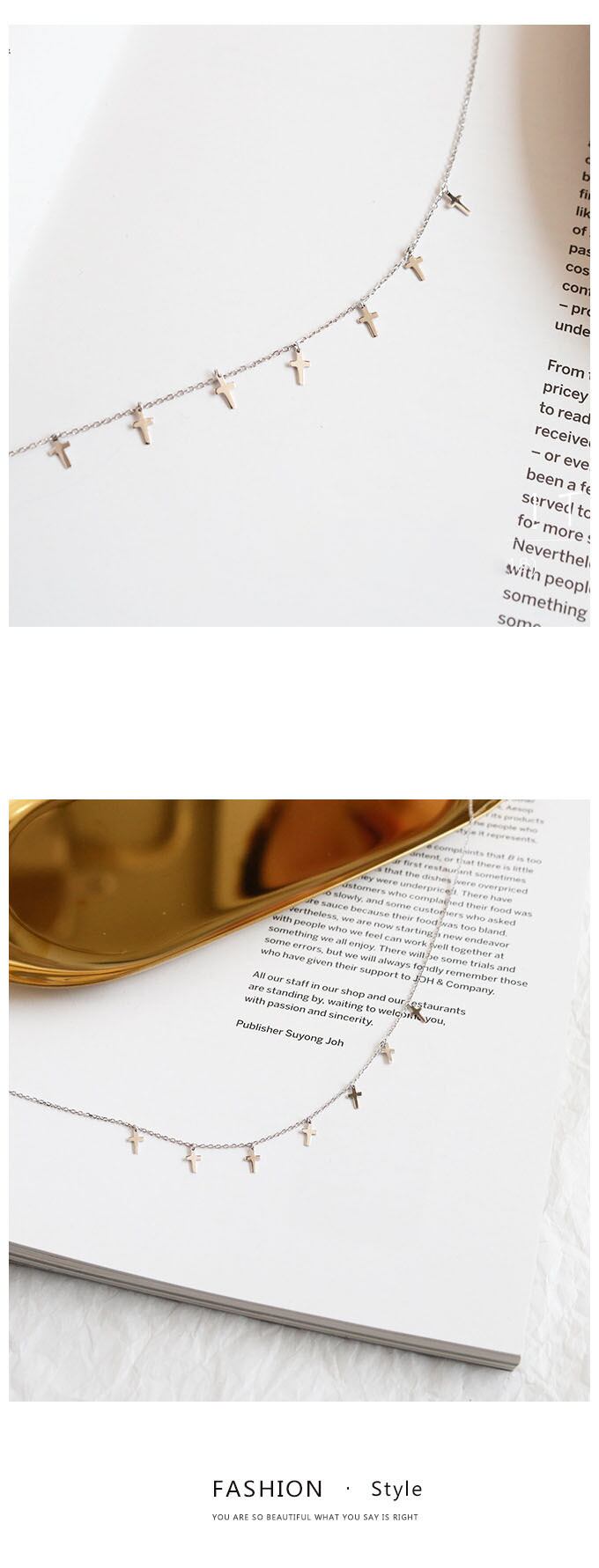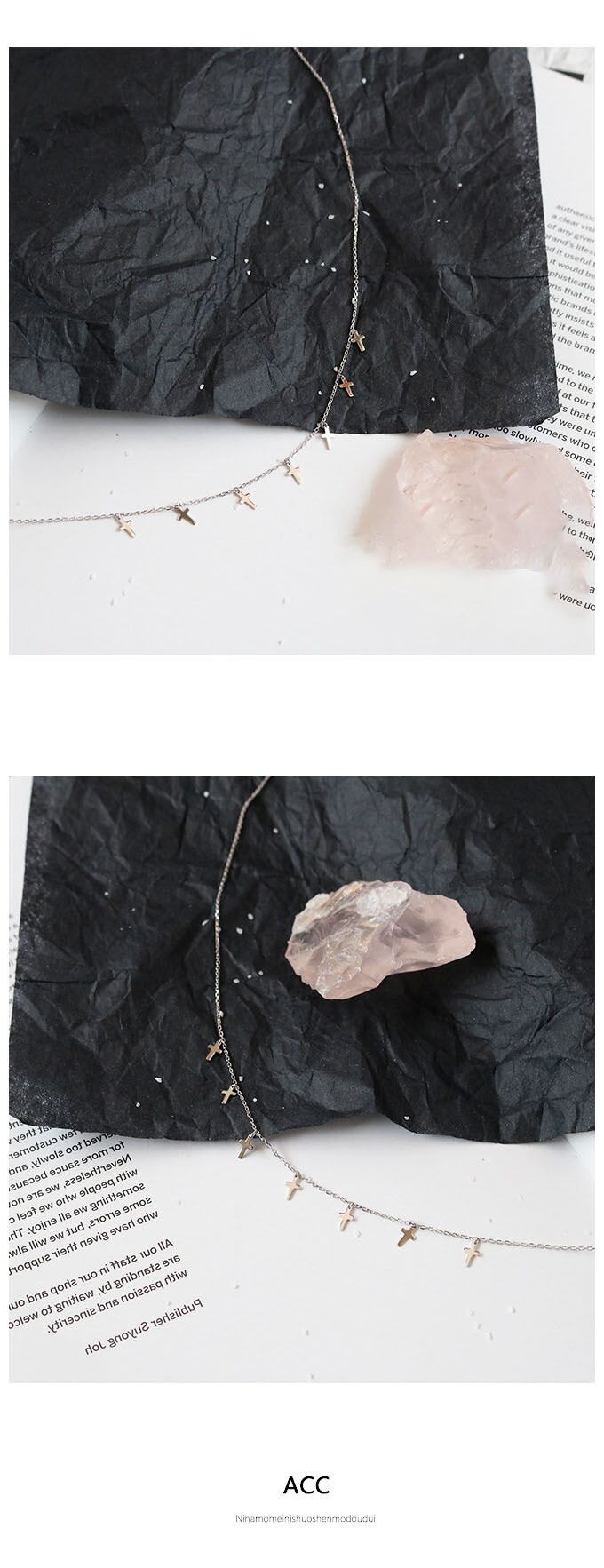 送料無料 ANENJERYシルバーカラー銅シンプル7クロスTelネックレス女性チョーカーカラーS-N452 レース 銀 アクセサリー AE165529070065367