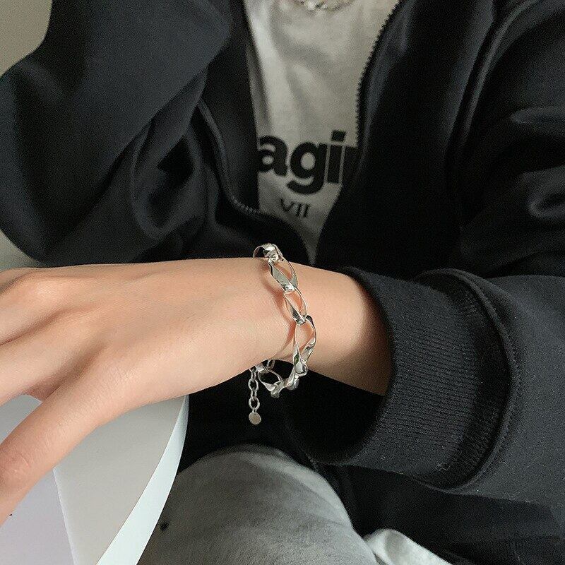 送料無料 ANENJERYシルバーカラーウェーブオーバルブレスレットレディースメンズタイシルバーイレギュラーインターロックアジャスタブルブレスレット2022 銀 アクセサリー AE165529036008710