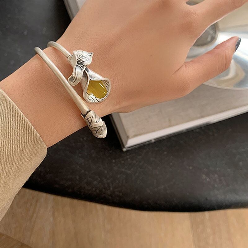 送料無料 ANENJERYシルバーカラー銅花の葉ブレスレット&バングル女性レトロテンペラメントケリアンハンドジュエリー フラワーデザイン 銀 アクセサリー AE165541065179589