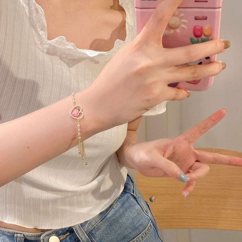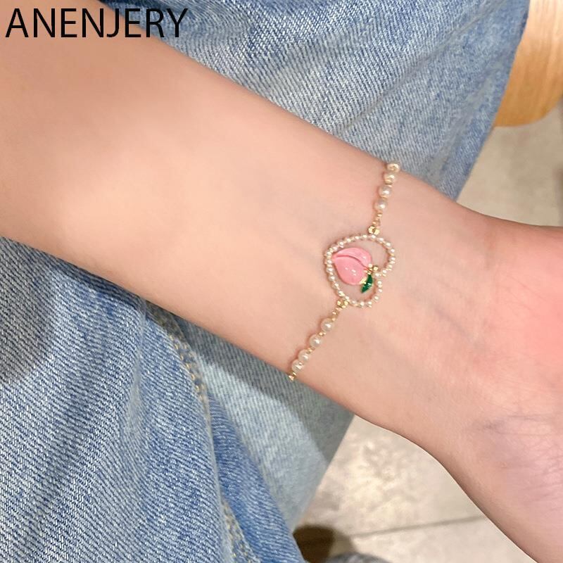 送料無料 ANENJERYゴールドカラーサマーピーチハートホロウブレスレットレディースパールブレスレットカップルギフト 夏物 真珠 アクセサリー AE165570079415814
