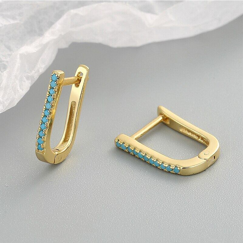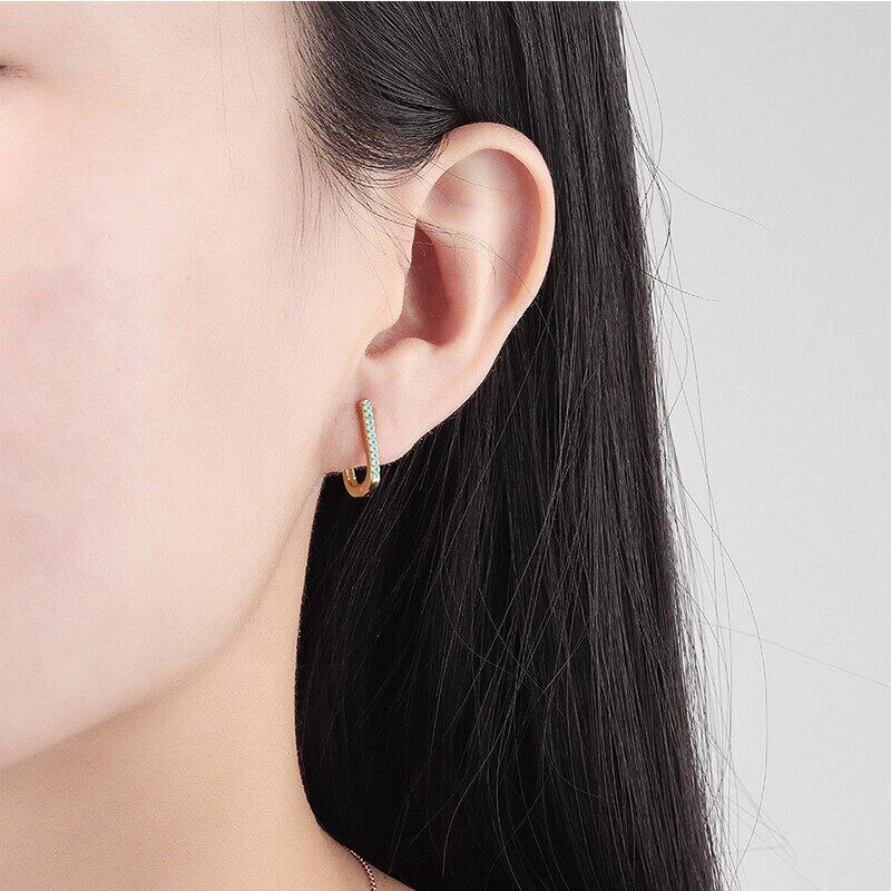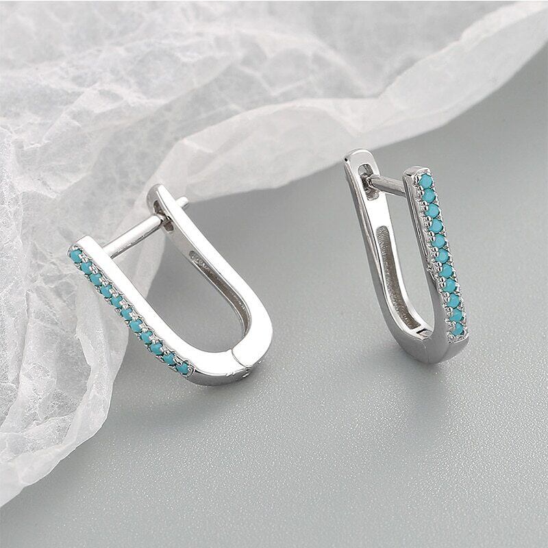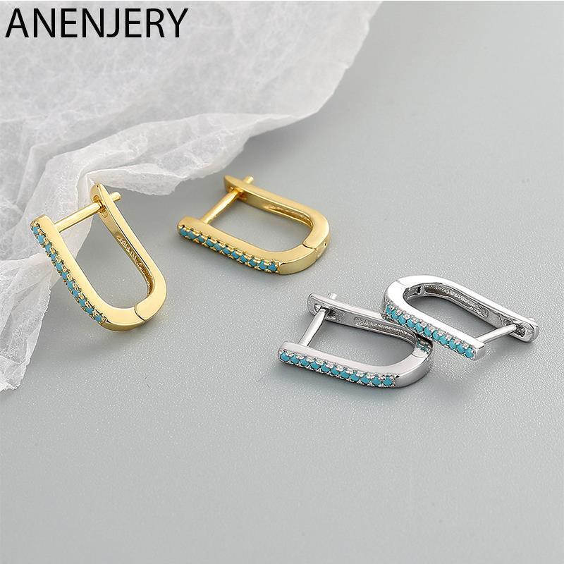 送料無料 ANENJERYシルバーカラーマイクロジルコンU字型フープピアス女性パーソナルレトロヨーロッパシンプルジュエリー イヤリング リング 指輪 銀 アクセサリー AE165565389501871